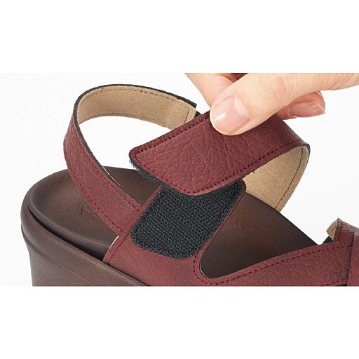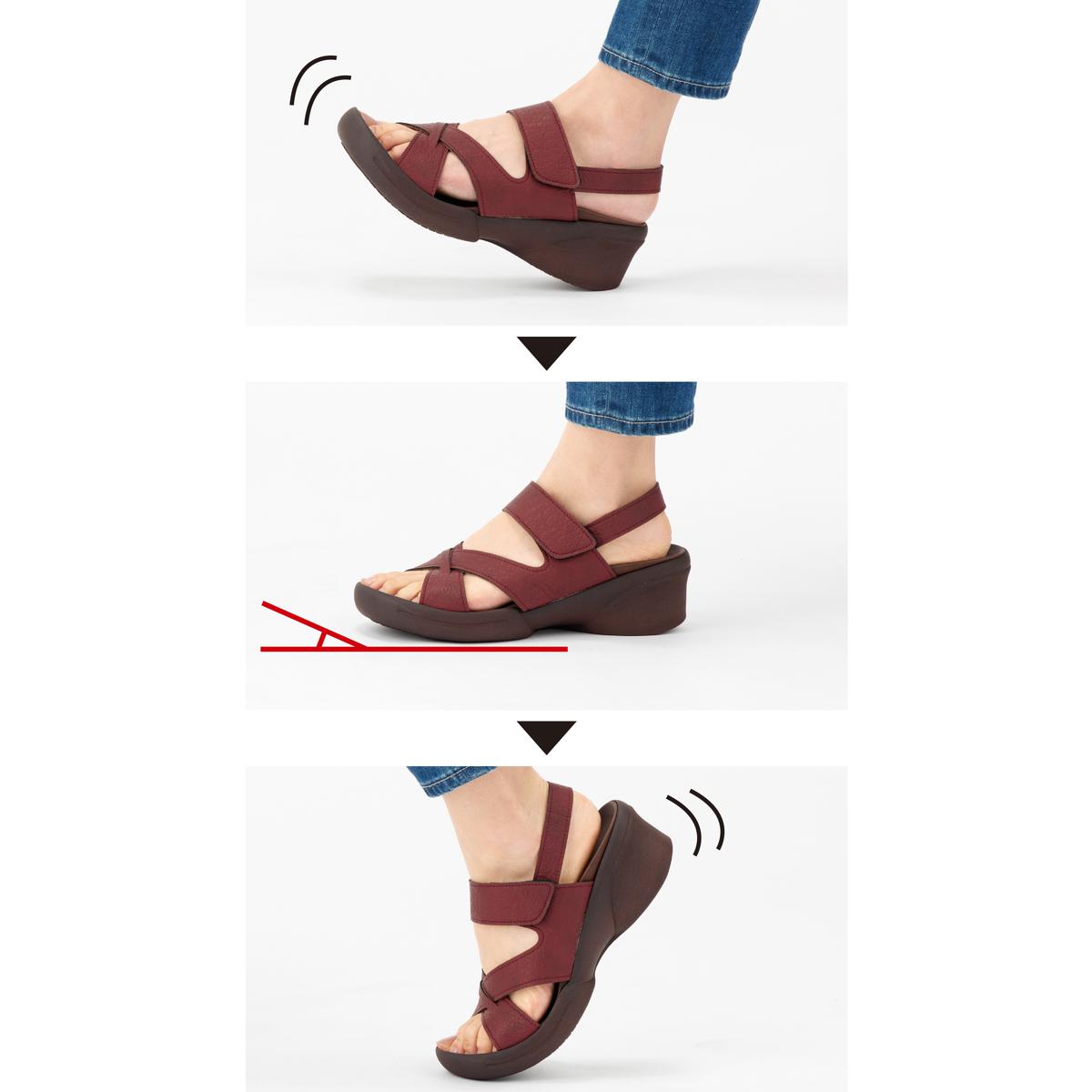 弾力のあるグミインソール®搭載。フィット感のあるクロスベルトで歩きやすい。-デザイン-美脚に見せて歩きやすい5.5cmヒール。足首のベルトは面ファスナーでサイズ調節可能です。ラウンドトゥで足先が広いため、窮屈に感じにくくゆったりはける。-素材特徴-柔らかく弾力性のあるグミインソール®。立体的な形状で足裏の凹凸にフィットし、歩く時の負担を軽減します。長時間のお出かけもラク。