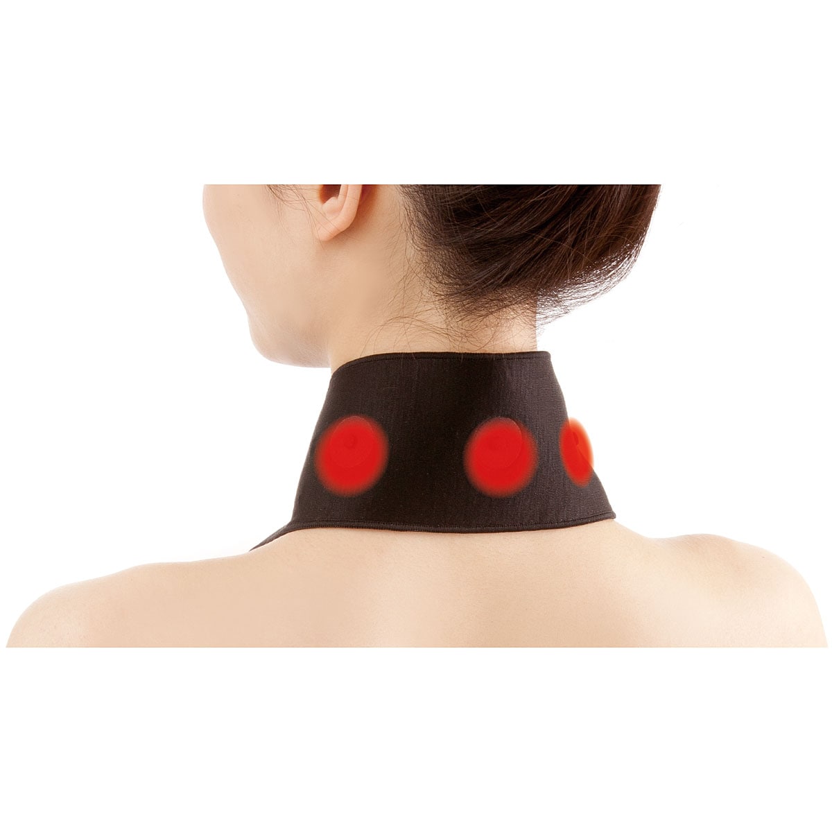 首の筋肉に沿うように配列された3つの永久磁石が血行促進し、凝りを改善します。
