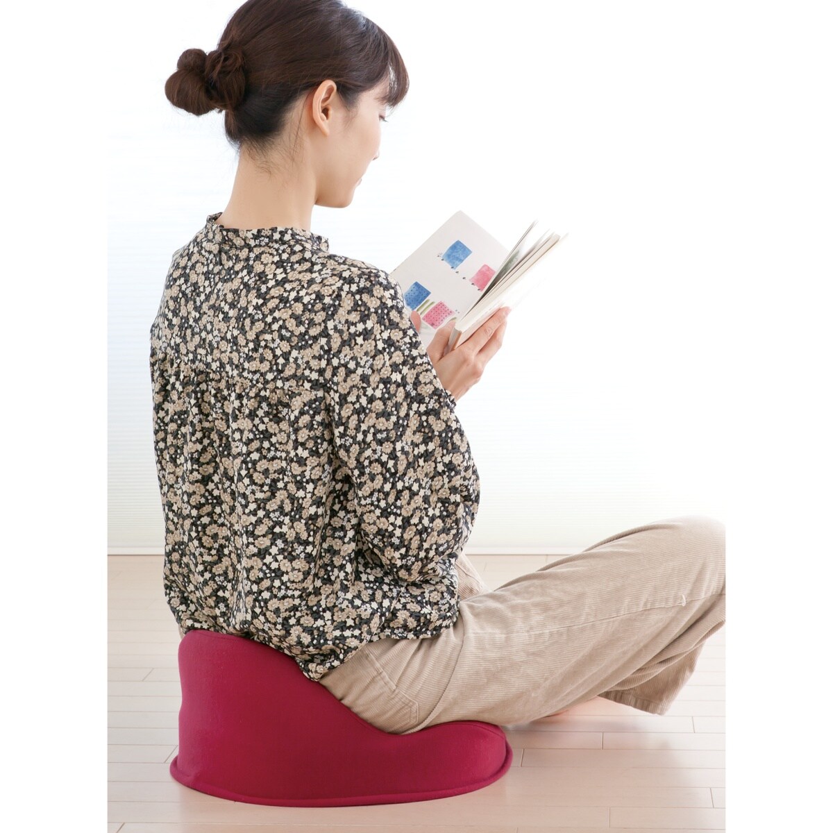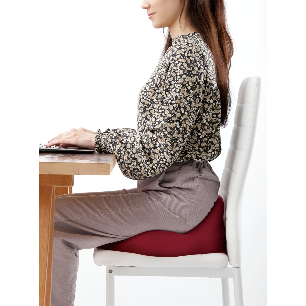 腰まわりをホールドし、楽に座り姿勢をキープ。