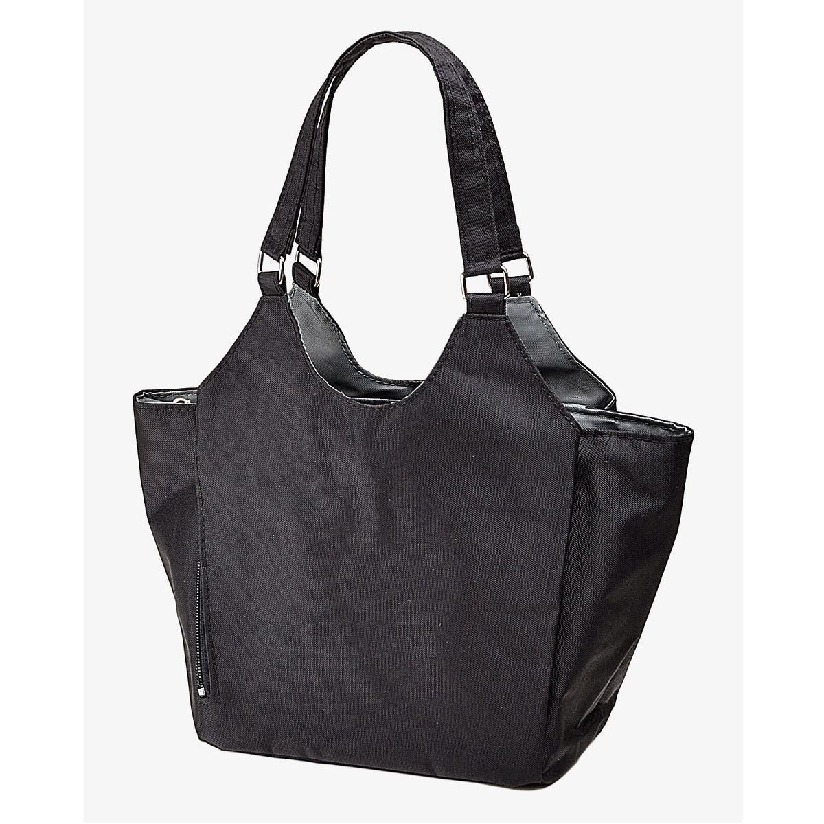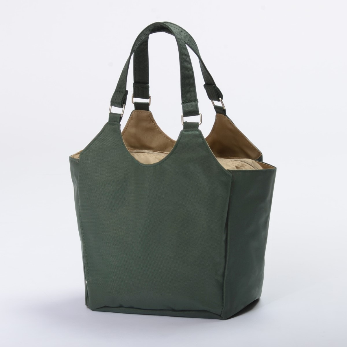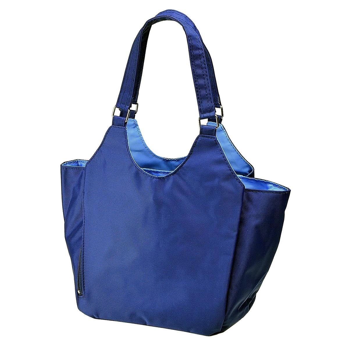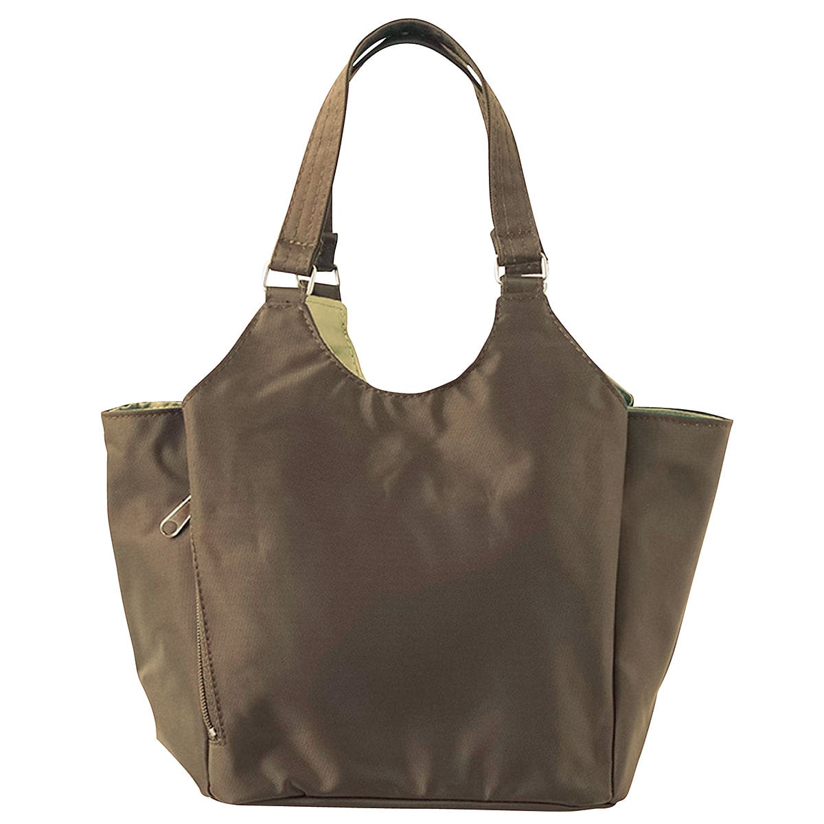 ■素材/ナイロン100% ■サイズ(約cm)/[本体]縦20×横31×マチ13 [持ち手高さ]16 ■重量/約230g ■仕様/[開閉]中央部ファスナー式 [外側]マグネットホック付あおりポケット×2、縦ファスナーポケット×1、ファスナーポケット×1 [内側]オープンポケット×1●中国製