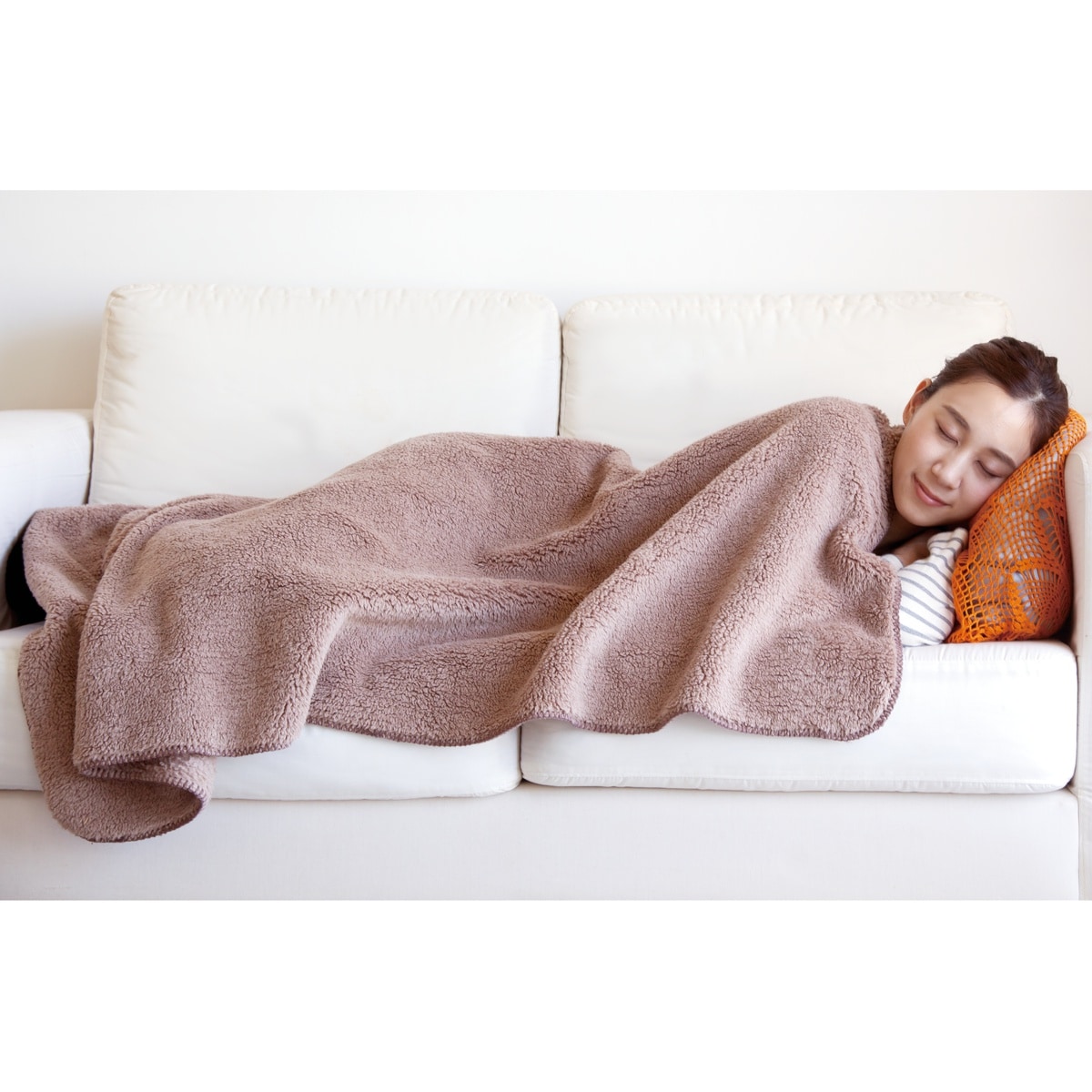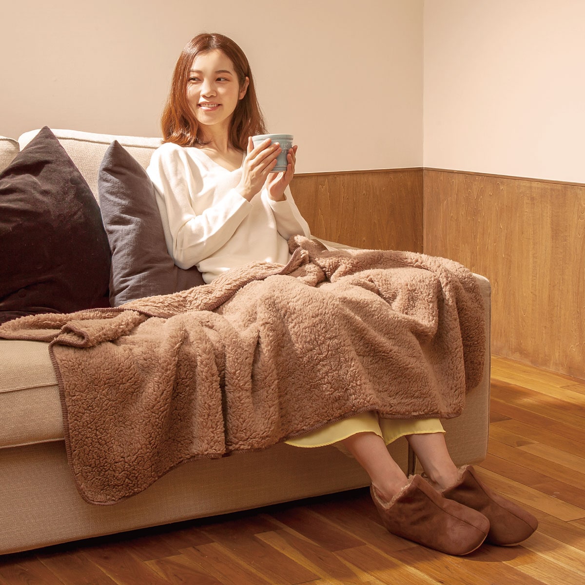 細さ9ミクロンの糸を使用したソフトな肌ざわりと、至福の暖かさに癒されるブランケット、ひざ掛けにもおすすめ。