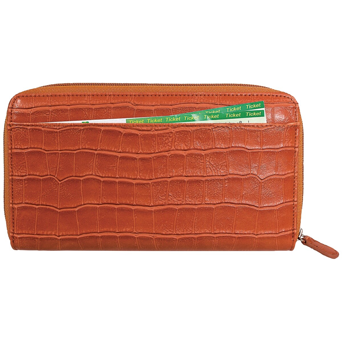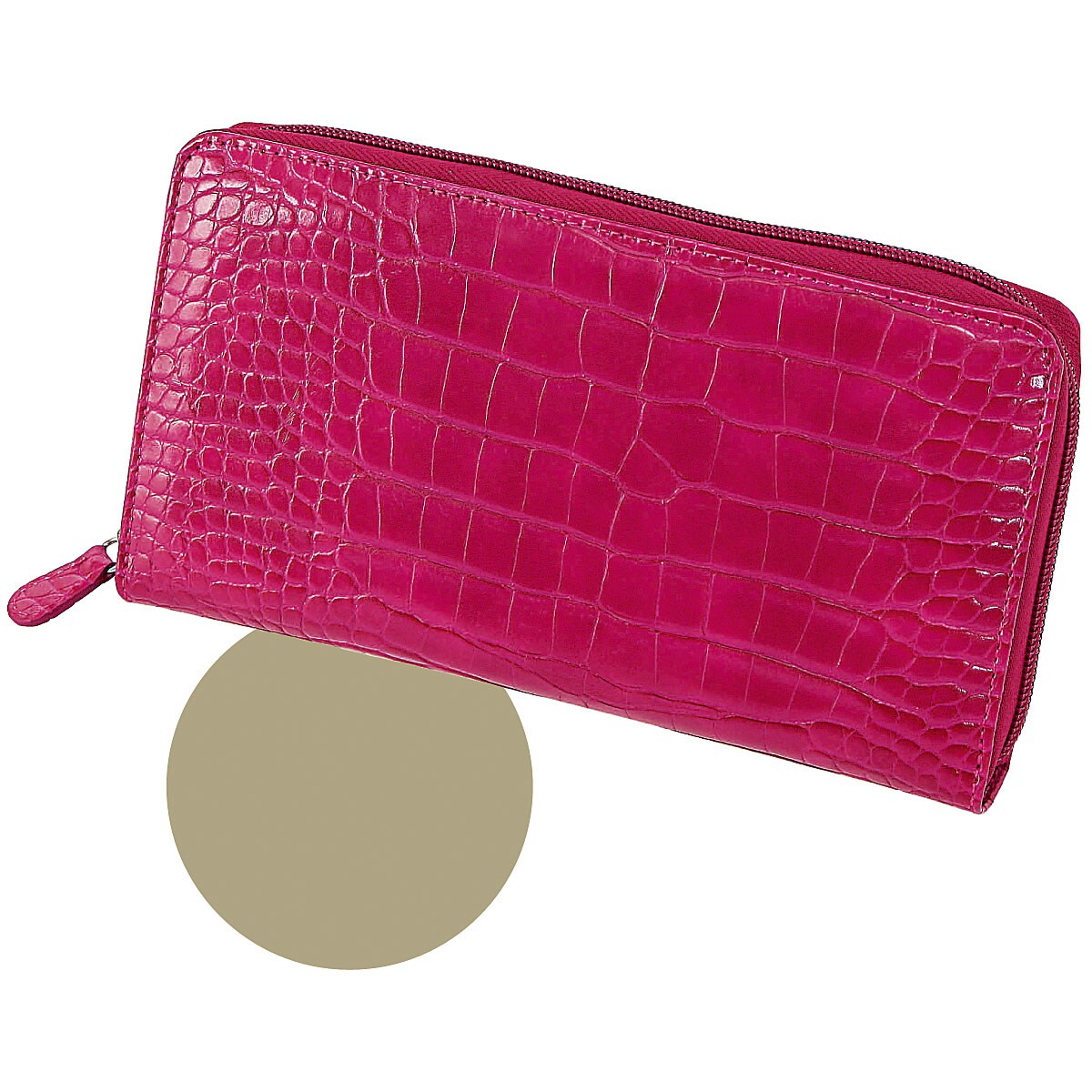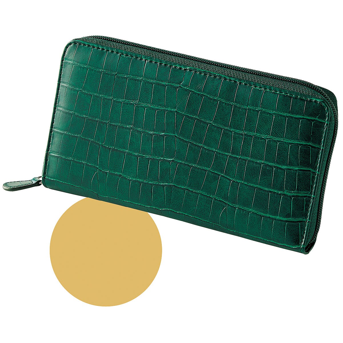 ガバっと大きく開くジャバラ式の大容量長財布。見やすく取り出しやすい。ーデザインー36カード収納可能。多ポケットでスッキリ収納!マチなしポケットは通帳や領収書入れに。ー素材特性ークロコダイル調の合成皮革を使用。