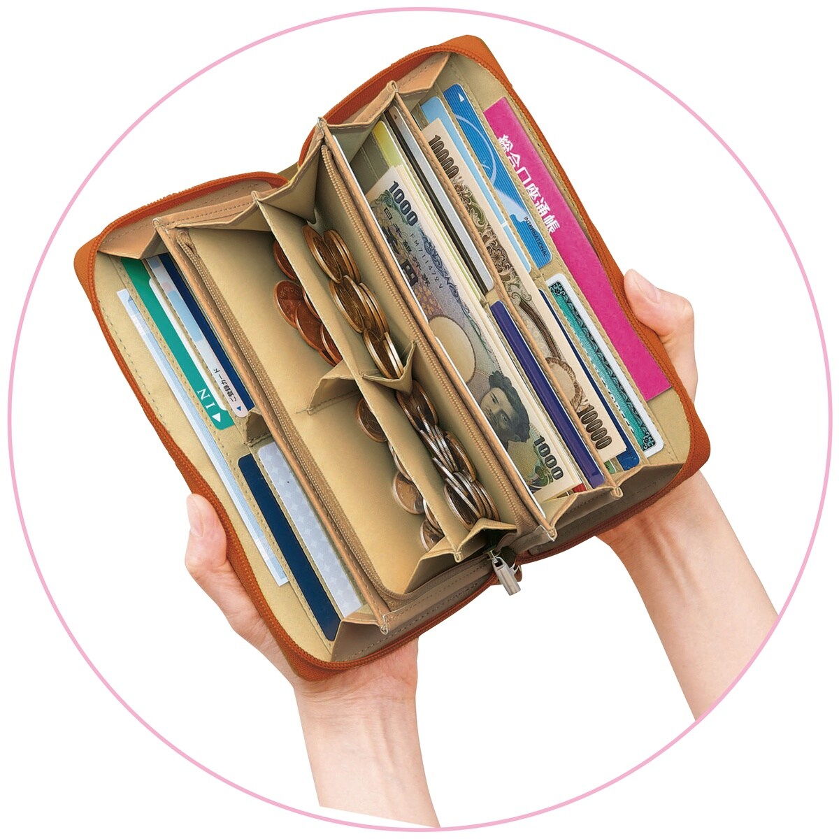 小銭もカードも通帳も、スマートフォンも入る!たっぷり仕分けて収納