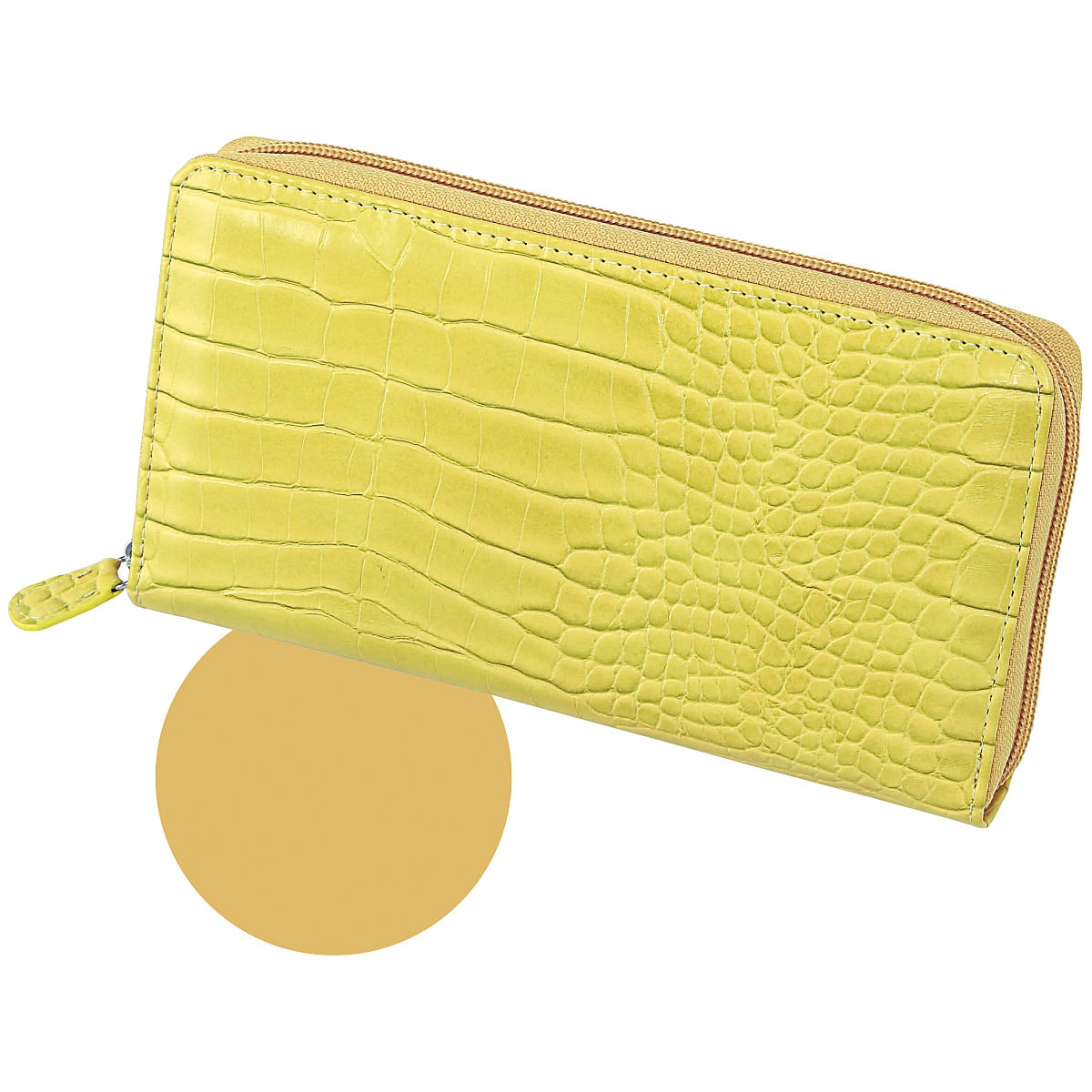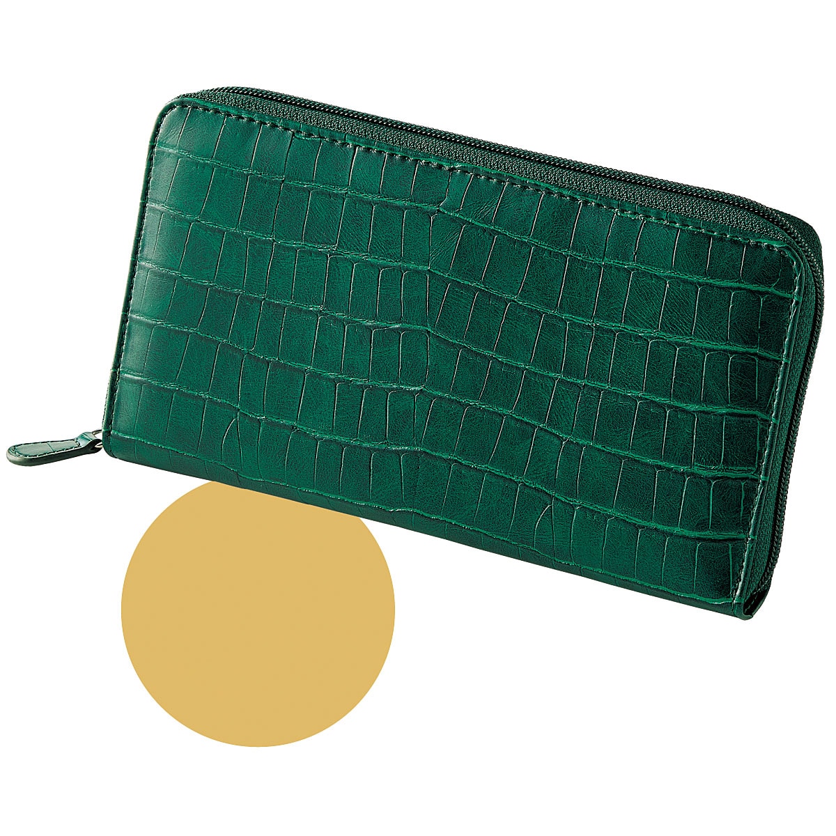 ガバっと大きく開くジャバラ式の大容量長財布。見やすく取り出しやすい。ーデザインー36カード収納可能。多ポケットでスッキリ収納!マチなしポケットは通帳や領収書入れに。ー素材特性ークロコダイル調の合成皮革を使用。