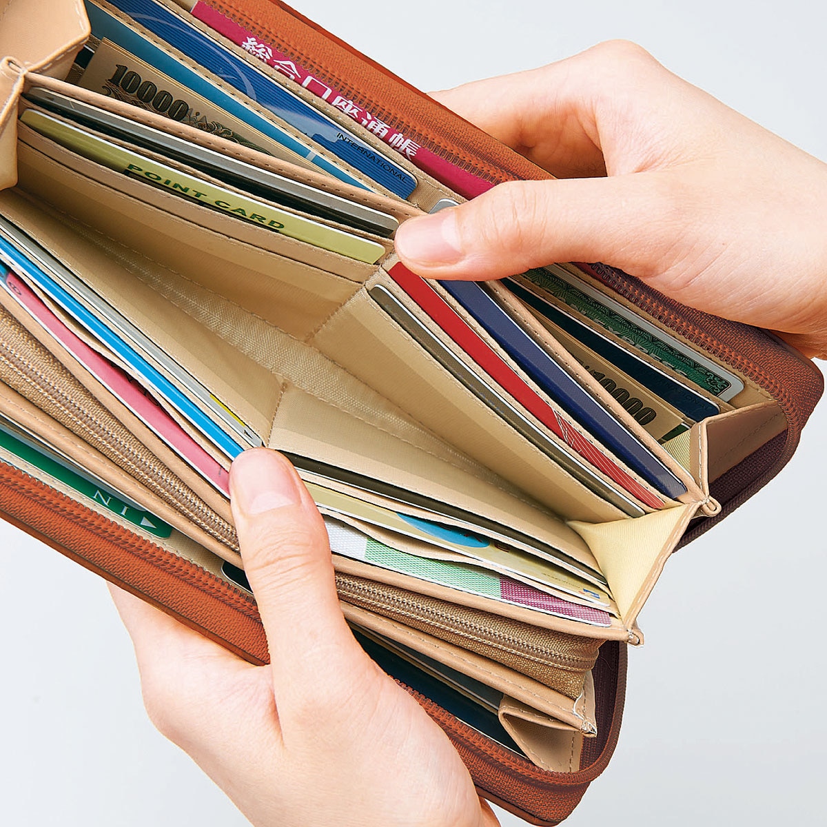 ブラウン小銭もカードもたっぷり仕分けて収納!※イメージ