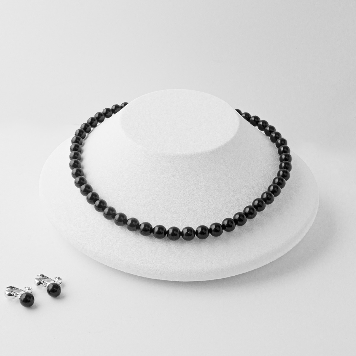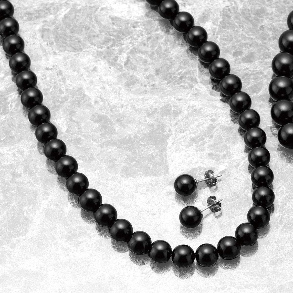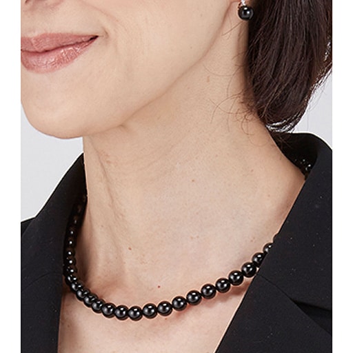 「漆黒の宝石」として愛される天然ジェットの8mmネックレス選べるピアスとイヤリングのセット(日本製)