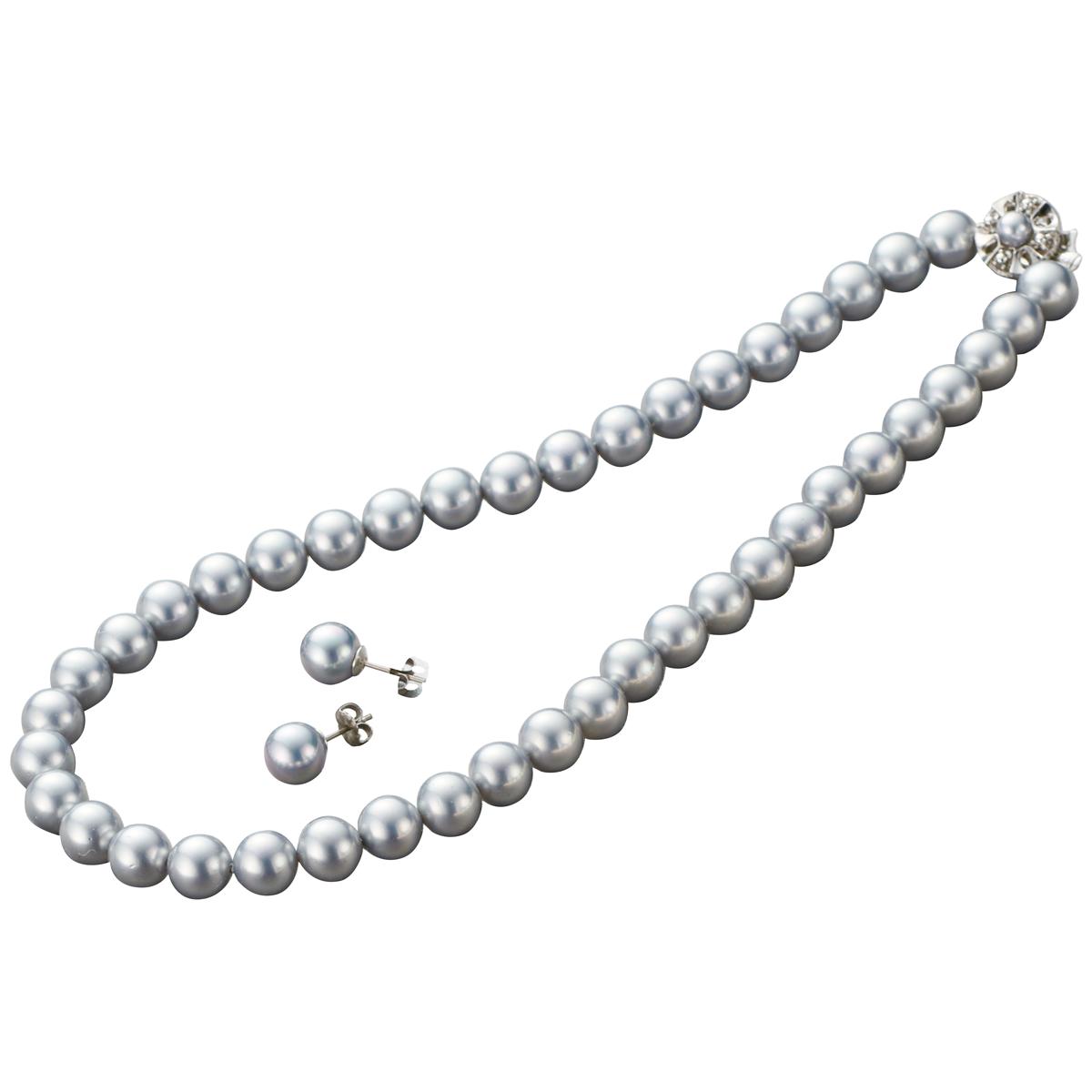 大切な日の装いに気品を添える。気品ある美しい輝きが装いに特別感を添え、ワンランク上の花珠調貝パールネックレスセット。華やかなシーンや厳かな場所でも。大人な女性を演出します。ーデザインー存在感のあるエレガントな9mm珠サイズ。全長42cmの鎖骨に乗るくらいの長さで、首元を華やかに。