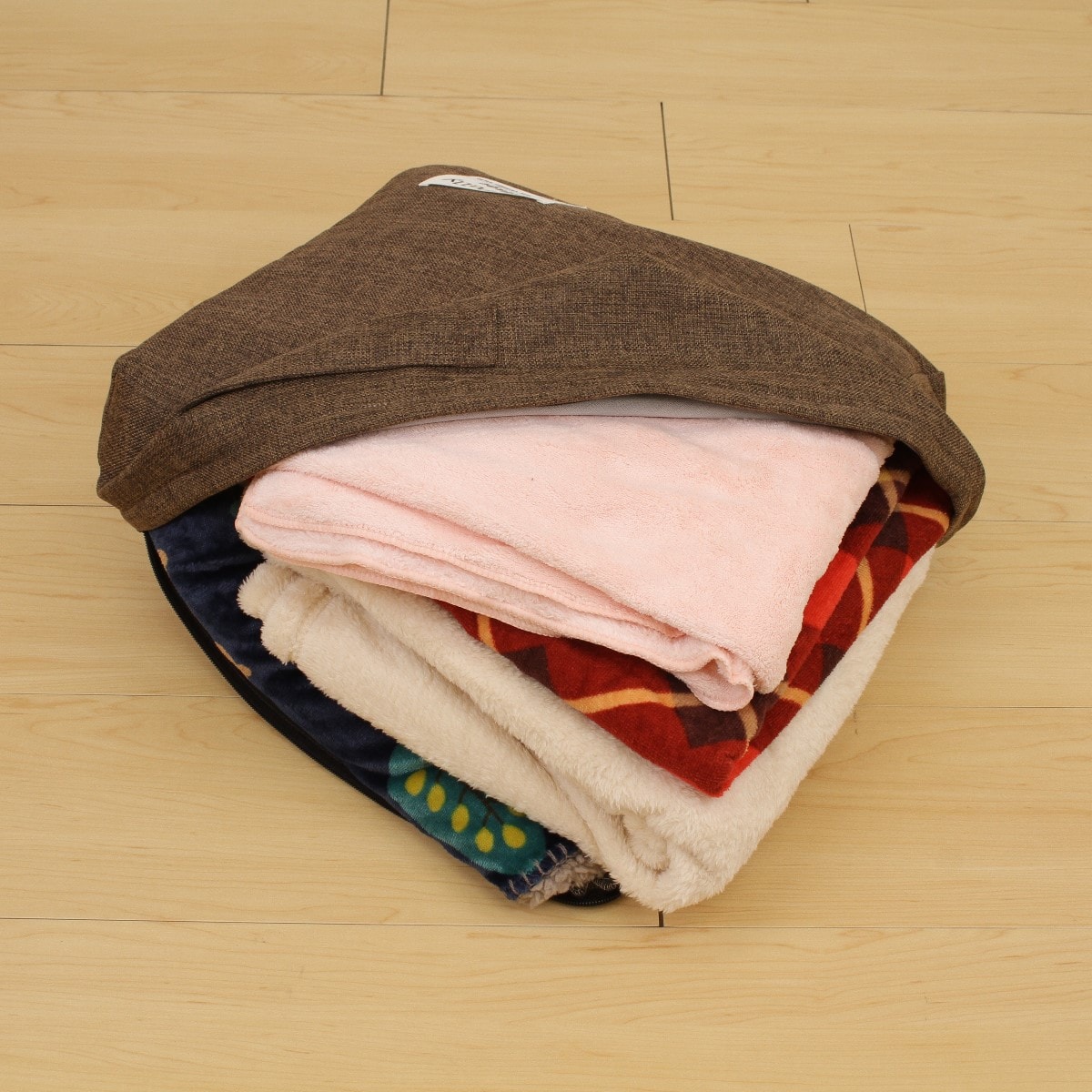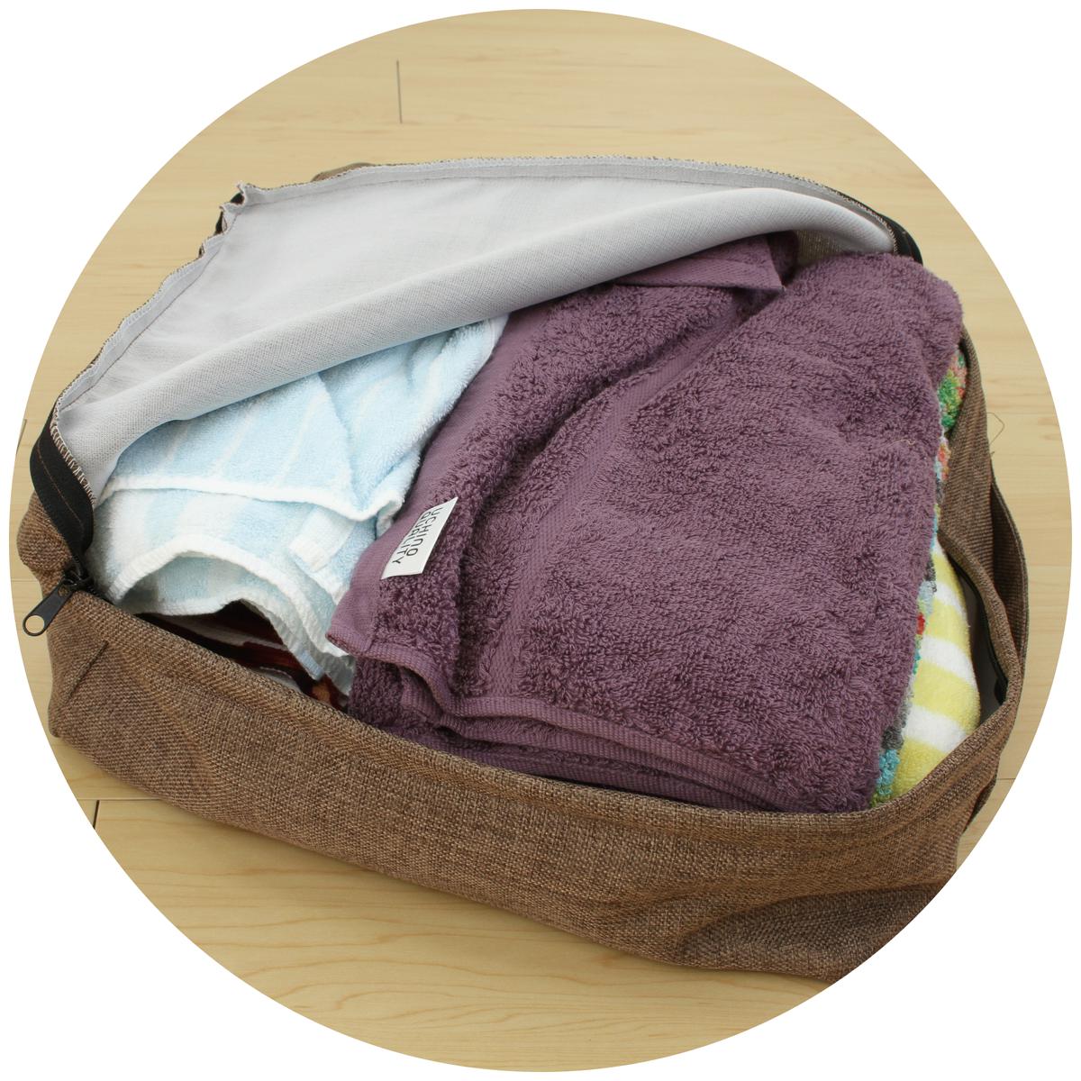 タオルやブランケットを有効活用!ふかふかのクッションみたいにできる収納袋。