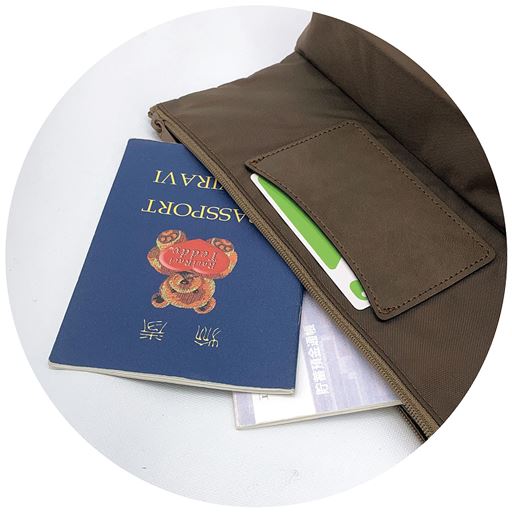 底板部に隠しポケットとICカード入れ付き。自動改札も楽々通過