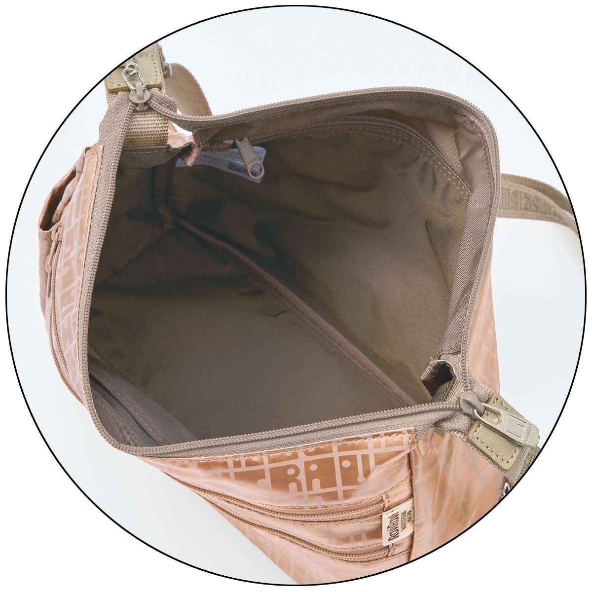 メイン収納部のダブルファスナーはロックが可能