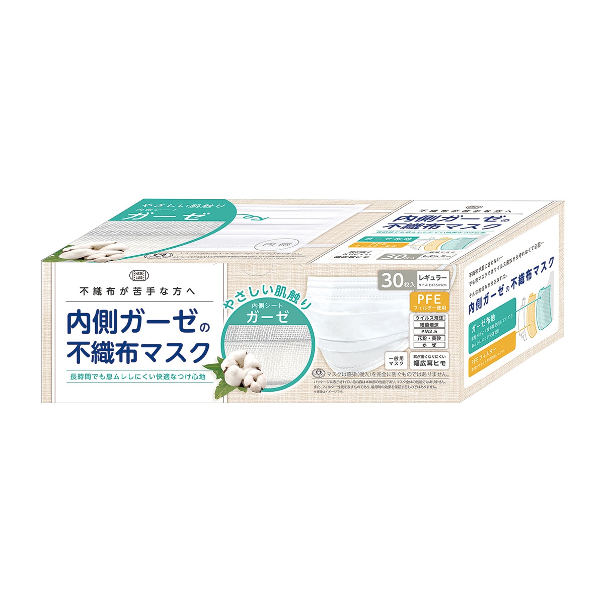 ムレにくくやさしい肌触り!内側ガーゼの不織布マスク