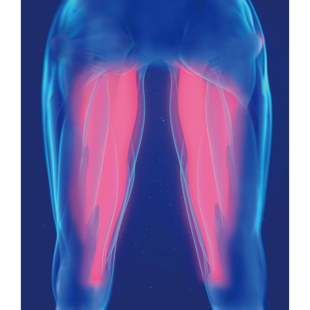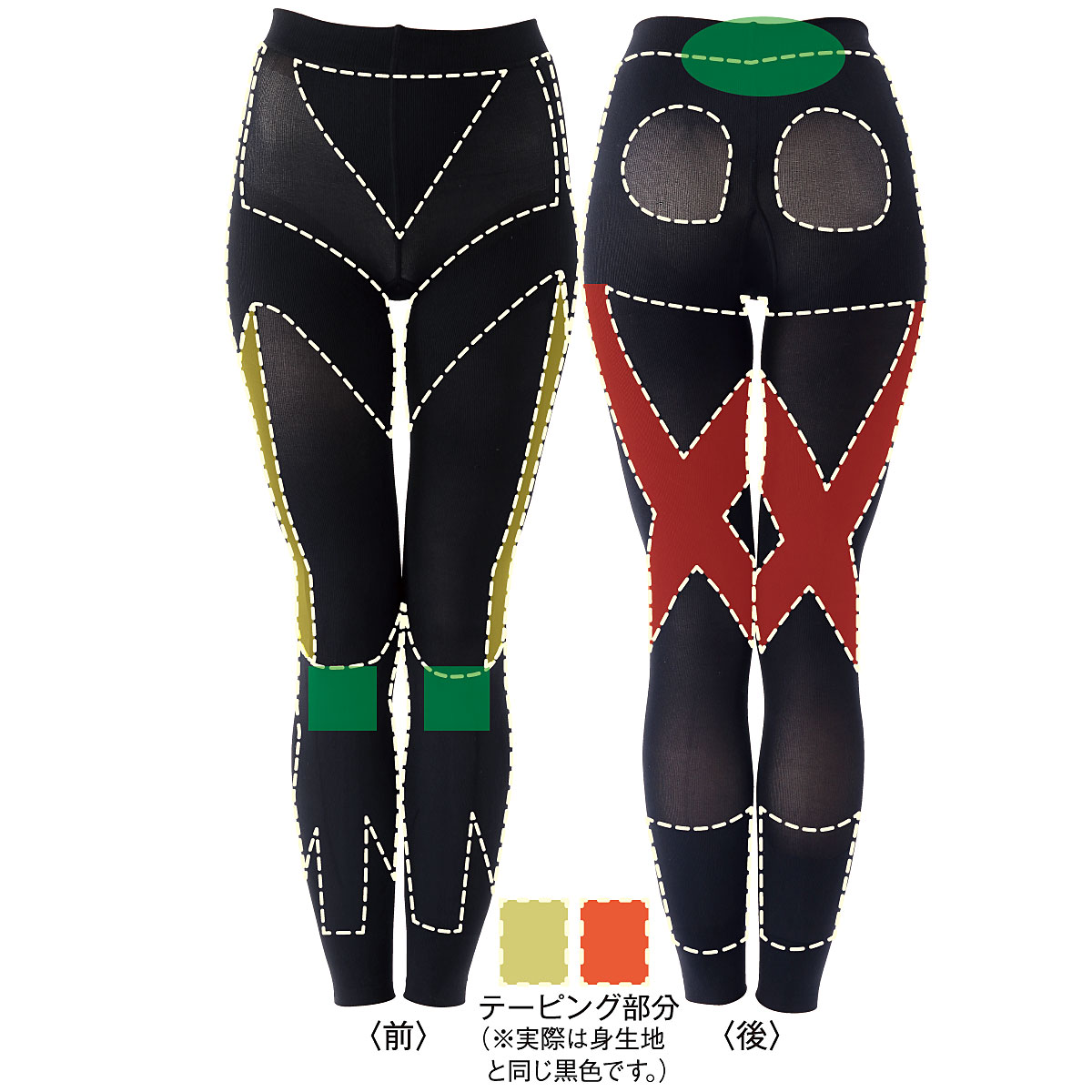 テーピング構造の適度な負荷で、はいて歩いて太ももと内ももの筋肉を鍛えます