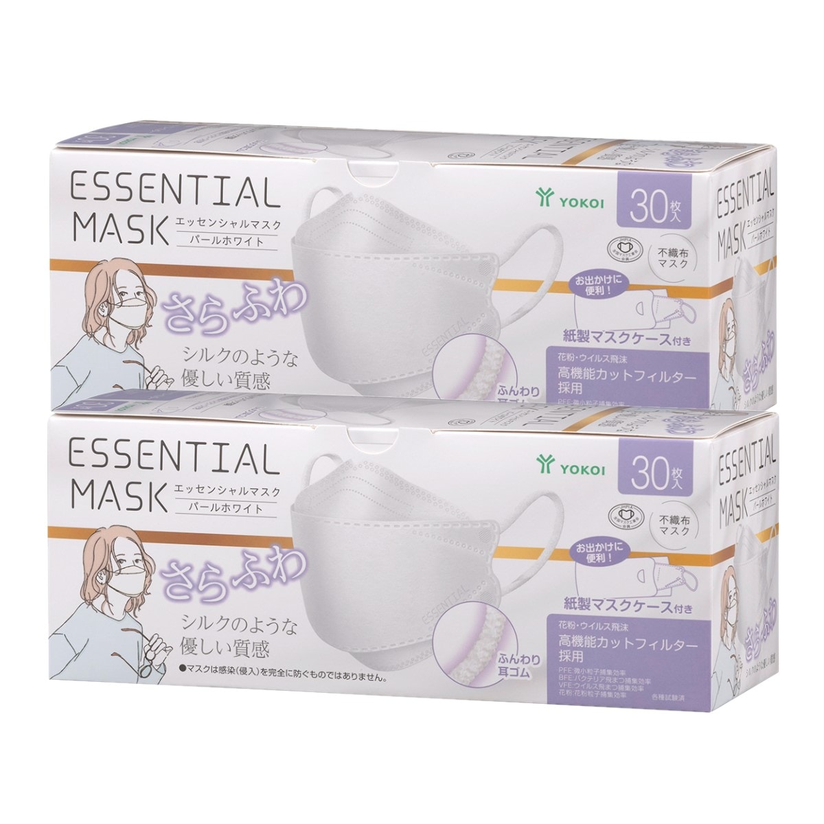 シルクのようなさらふわ質感 3D不織布マスクお出かけに便利なマスクケース付き【30枚×2箱セット】