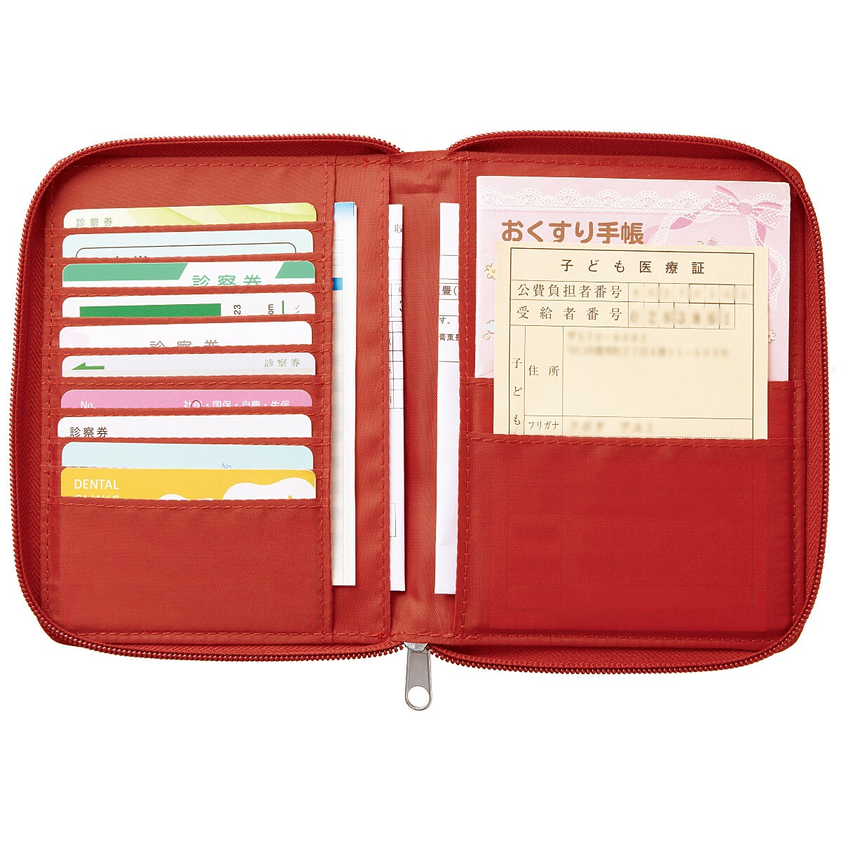 病院に必要な診察券や保険証、忘れがちなお薬手帳、処方箋などを見やすく収納!取り出しもスムーズです。