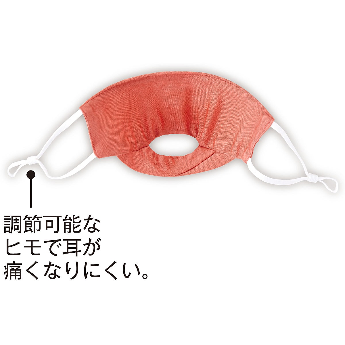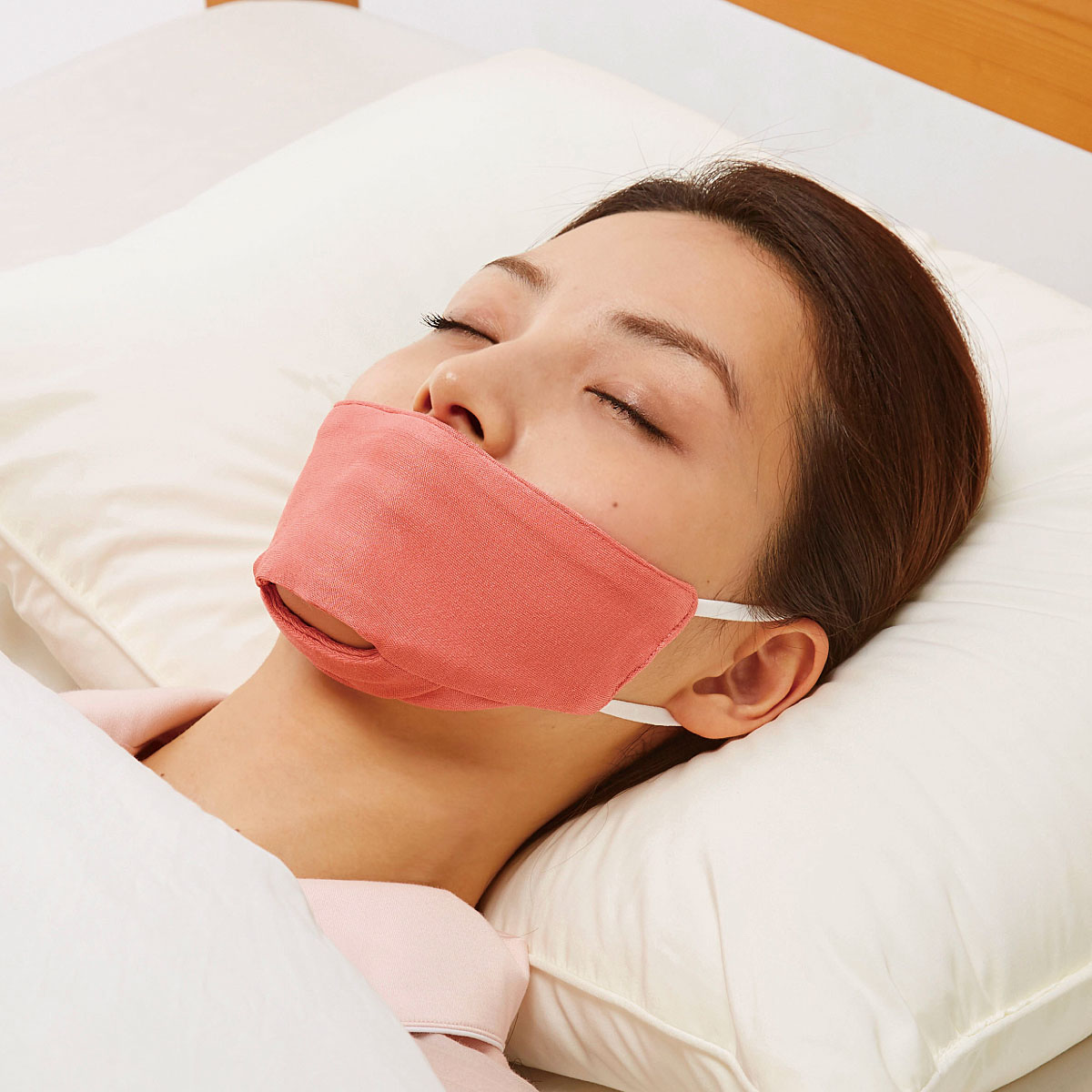 鼻を覆わないため呼吸がしやすく、就寝中もずれにくい形状で自然と鼻呼吸へ。クロス形状の生地があごを支え「鼻呼吸」をサポートします。調節可能なヒモで耳が痛くなりにくい。