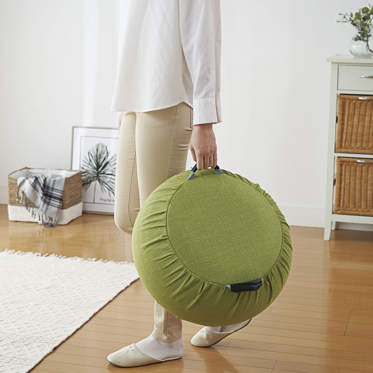 ■[本体]塩化ビニル樹脂 [カバー]側地:ポリエステル100%、クッション材:ポリエチレン [空気入れ・キャップ・キャップ抜き]ポリプロピレン ■サイズ(約cm)/直径46×高さ27(カバー着用時、持ち手含まず) ■セット内容/本体×1、カバー×1、空気入れ×1、キャップ×2、キャップ抜き×1■耐荷重/約150kg●手洗いOK(カバーのみ)●中国製