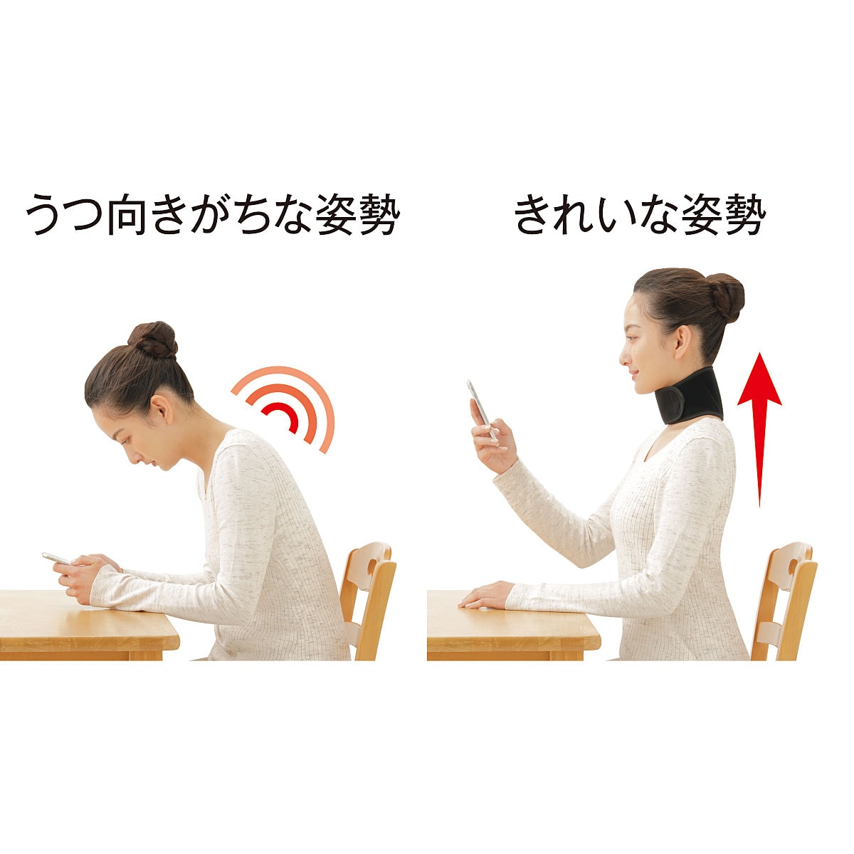 首を伸ばしてキレイな姿勢へ導くサポーター。磁気の作用で血行を改善します。首こりや冷えでお悩みの方に。