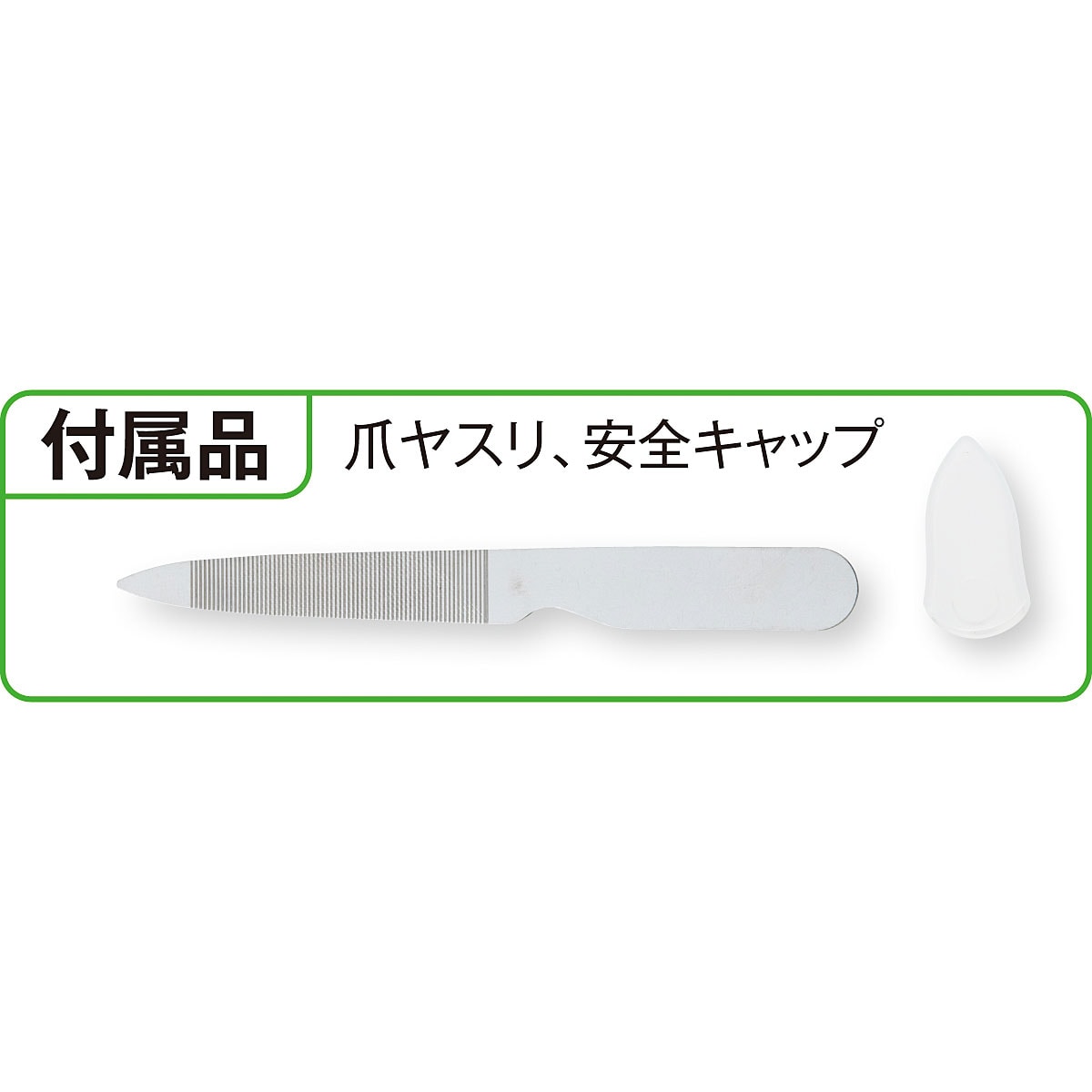 [本体]ステンレス鋼、熱可塑性エラストマー[安全キャップ]ポリプロピレン[爪ヤスリ]ステンレス鋼■サイズ(約cm)/[爪切り]5.5×12.5×1.8[爪ヤスリ]9×1×0.06■重量(約g)/[本体]54[爪ヤスリ]4●付属品/安全キャップ、爪ヤスリ●日本製