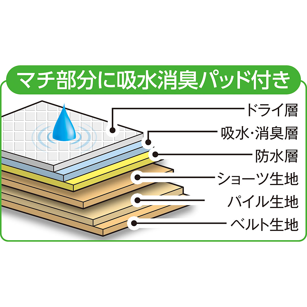 マチ部分に吸水消臭パッド付き