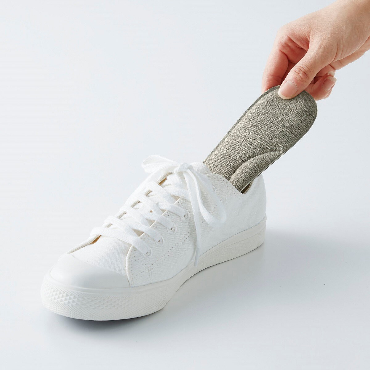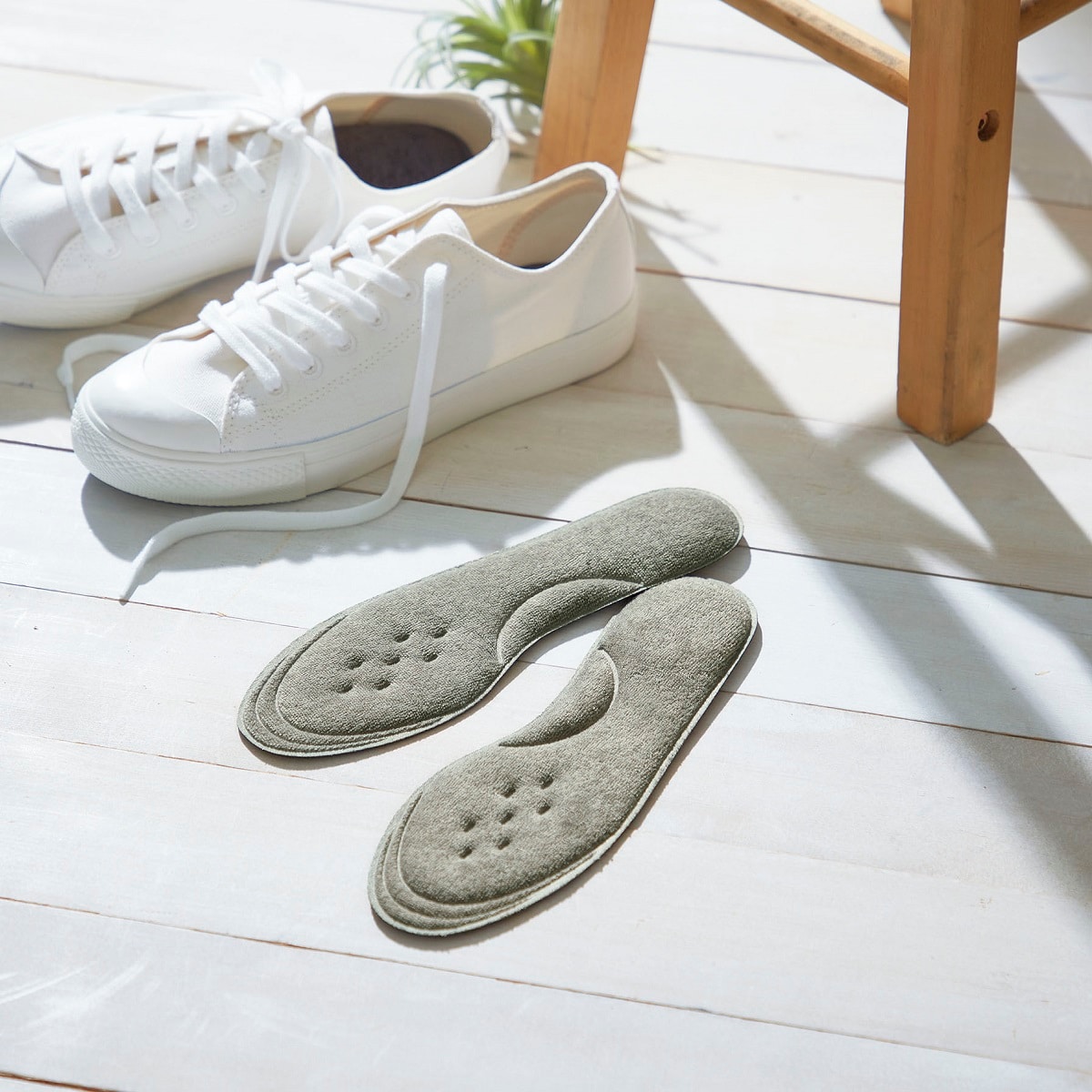 手洗い可能、かつムレにくいタオル生地で快適に履くことができます。低反発ウレタンで疲れにくく歩行をサポートします。