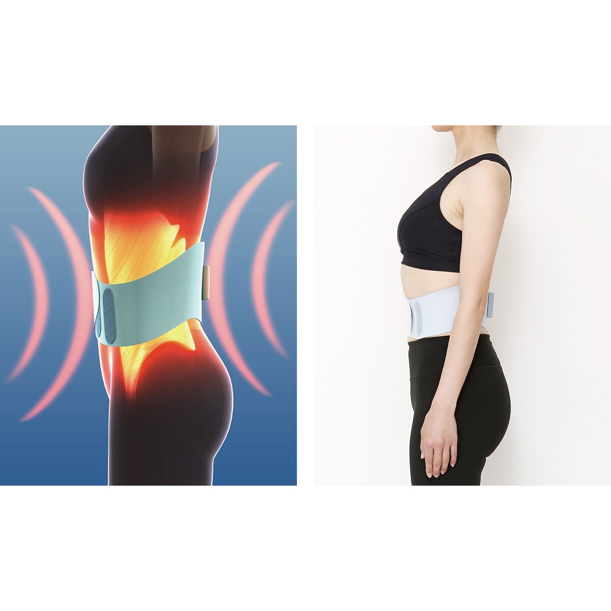 ベルト引き締め×EMSトレーニング Wアプローチで効果的にお腹まわりを引き締める!! シェイプベルト 伸縮ベルトで縮んだお腹を伸ばして引き締め補整&美姿勢キープ。