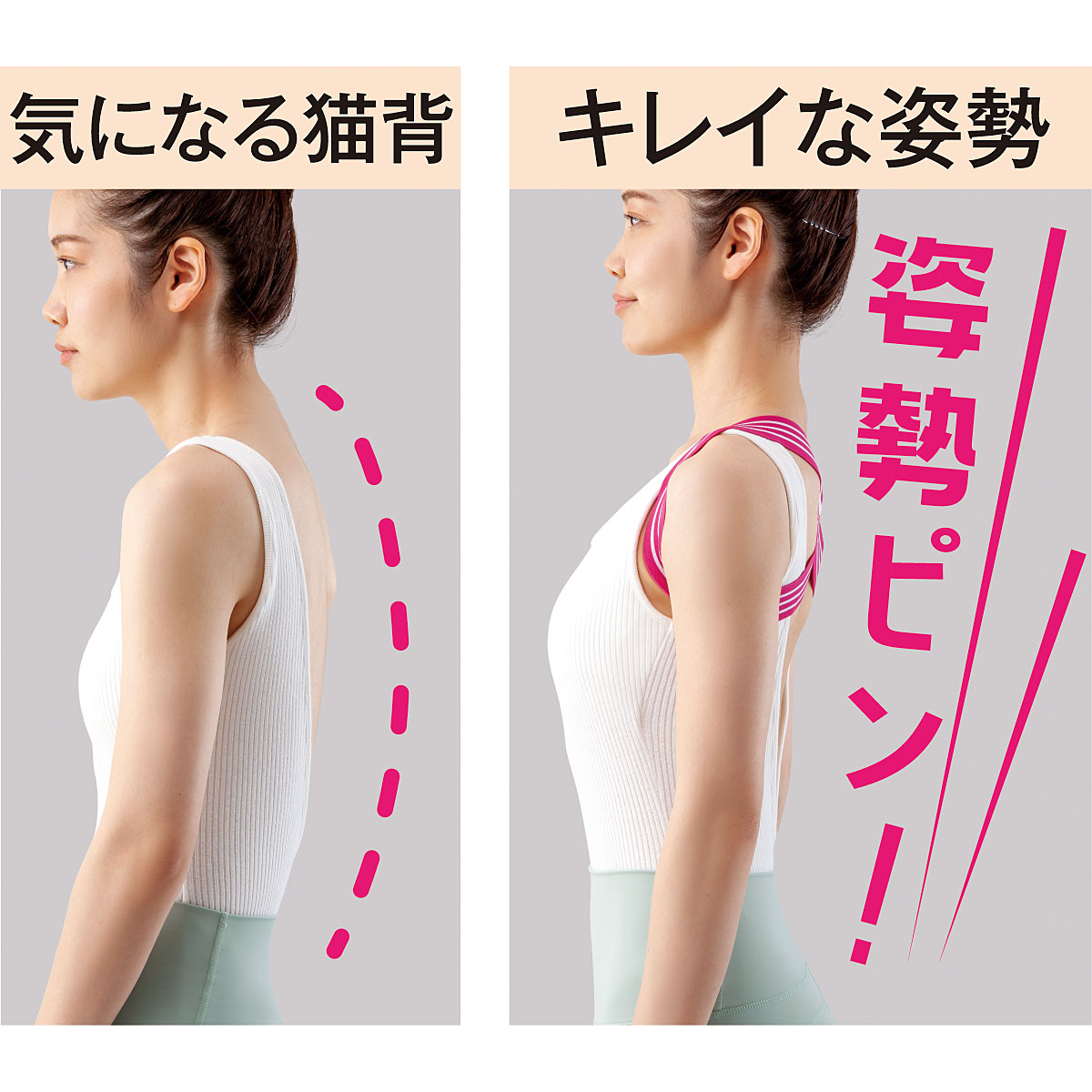 意識しててもついつい猫背に、、そんなあなたに!調節いらずの、装着するだけでキレイな姿勢を目指せるアイテム♪