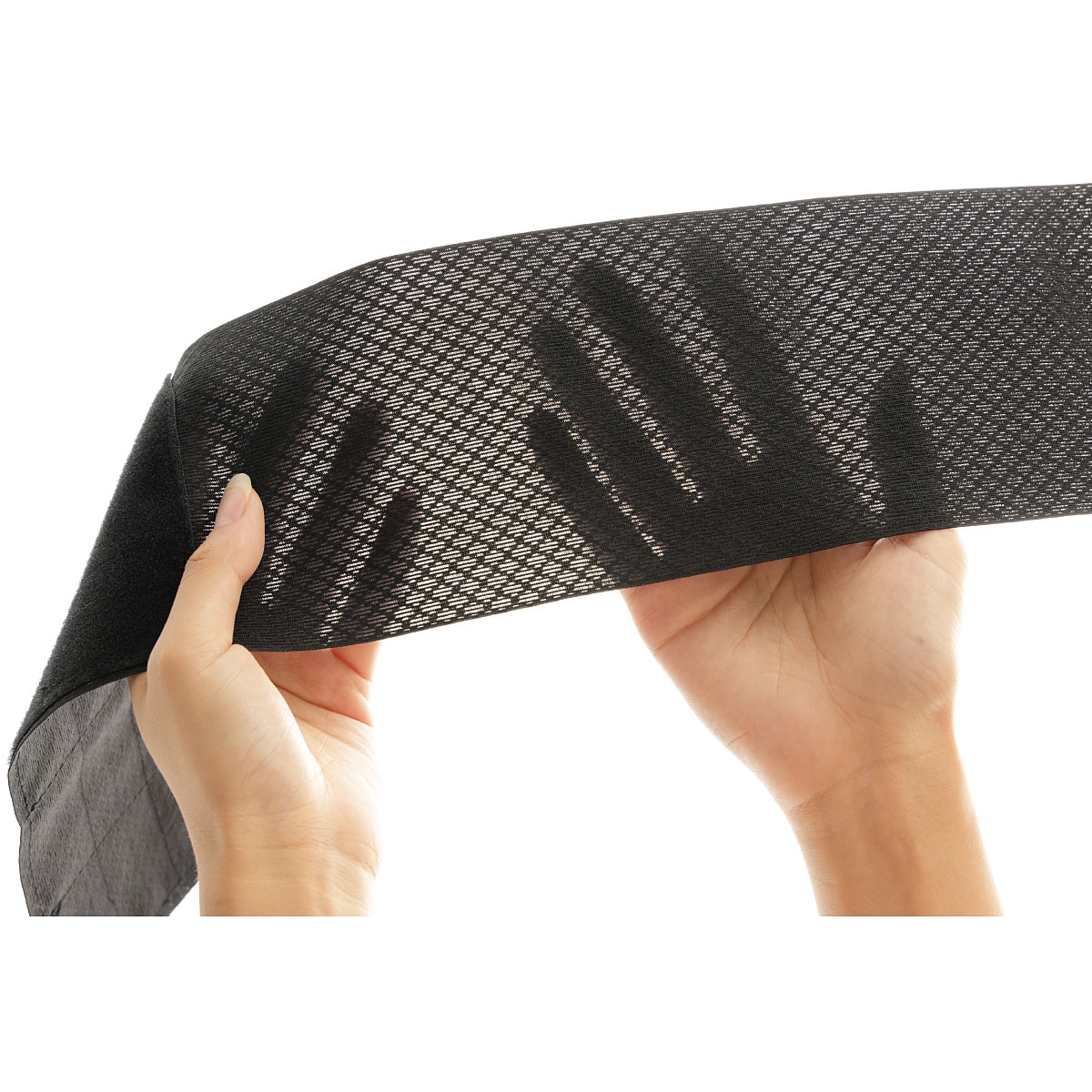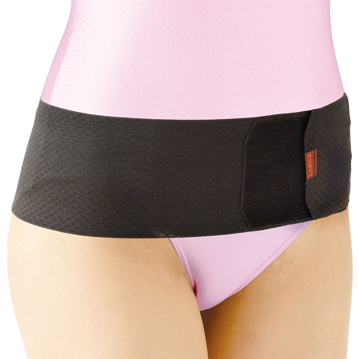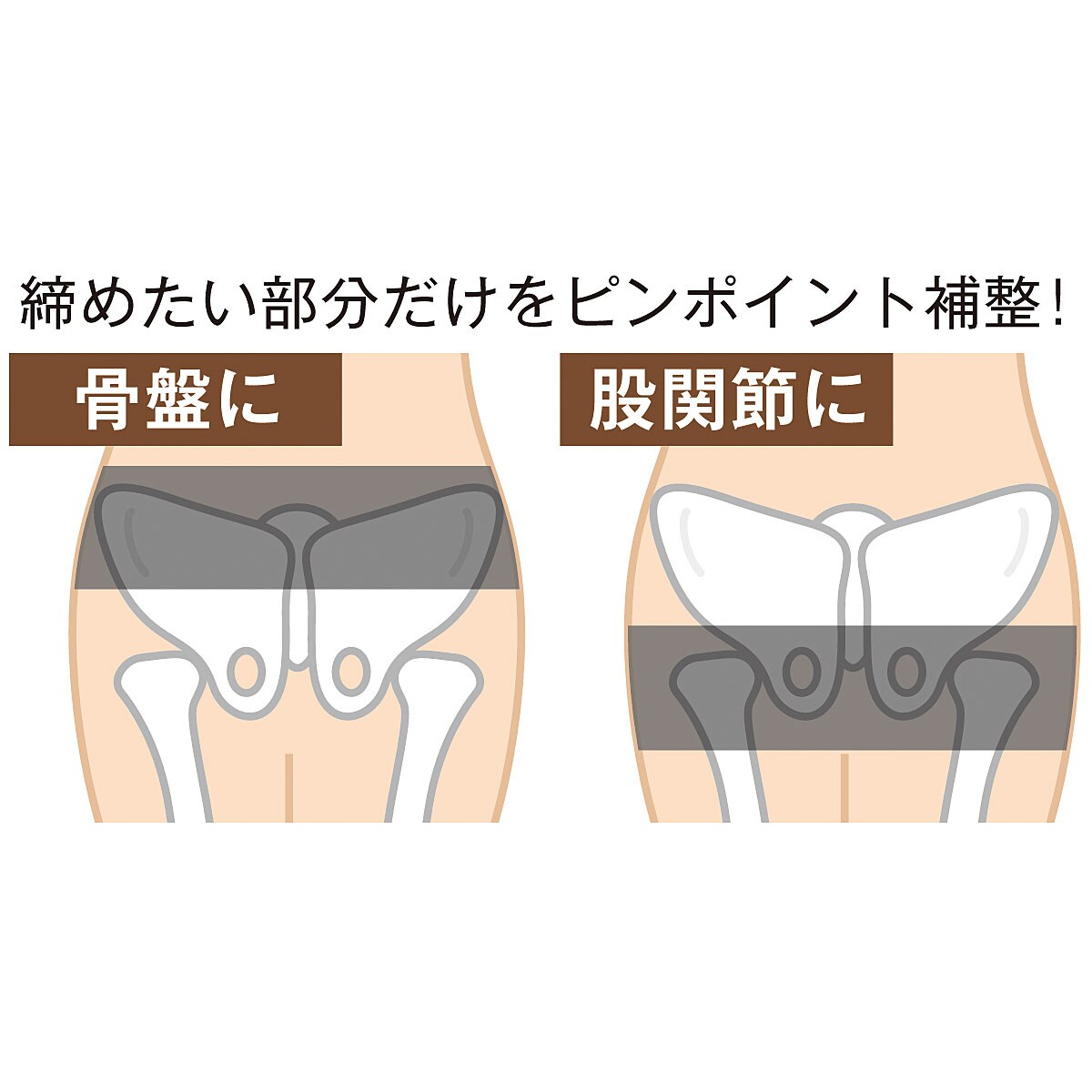 手軽にサッと巻くだけで骨盤や股関節を補整してくれます。メッシュ素材でムレにくく、段差ができにくいヘム加工でアウターに響きにくいのもポイントです。テープで着脱も簡単。