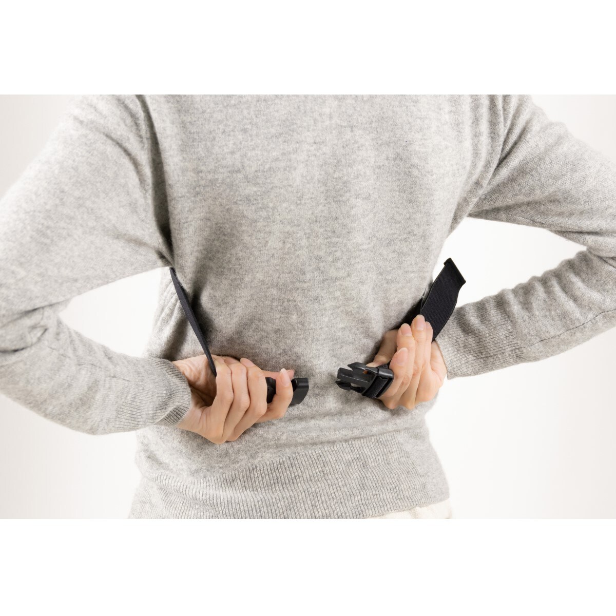 バックルでカチッと装着。体格や使用部位に併せてベルトの長さをバックルアジャスタで調整できます。