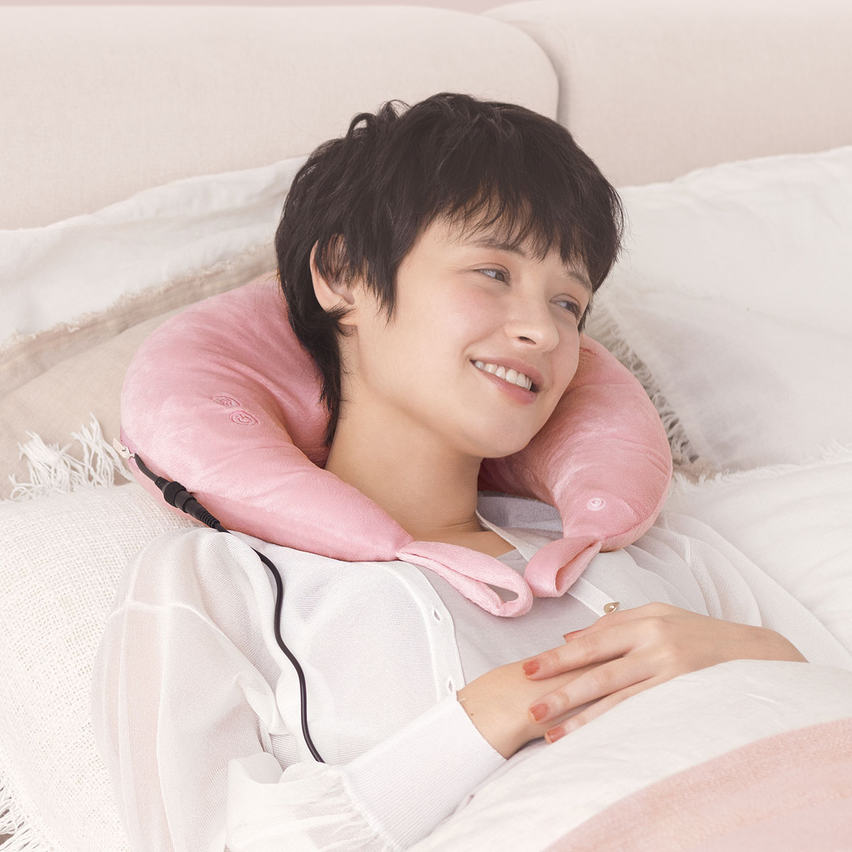 首筋を挟んで血行を良くする!マシュマロのようなふわふわ感覚で首をじっくりマッサージできるアイテムです☆