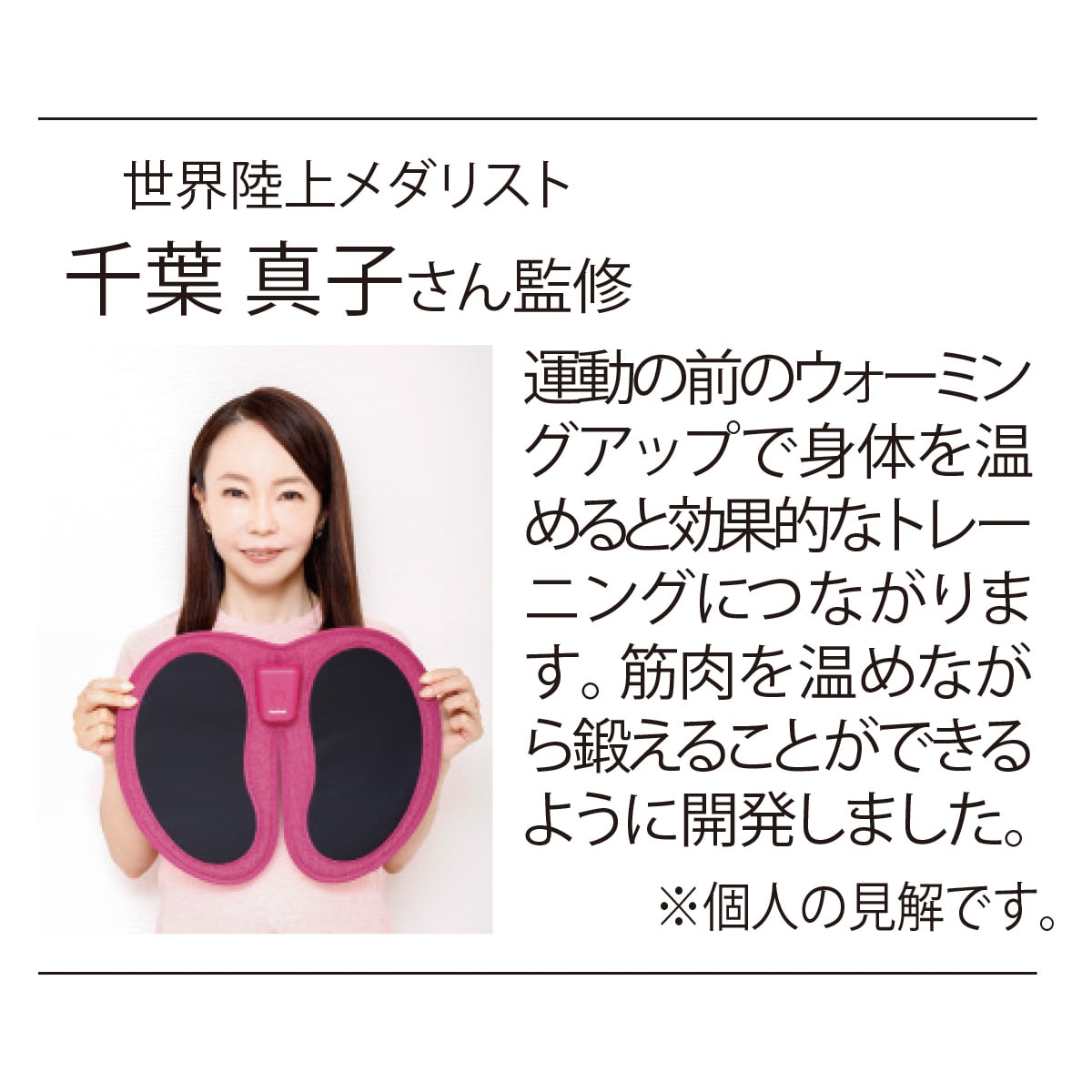 お尻に敷いても足に乗せてもOK。トレーニングモードとリラックスモードの2つのモードで簡単に本格的なトレーニングが行えます。
