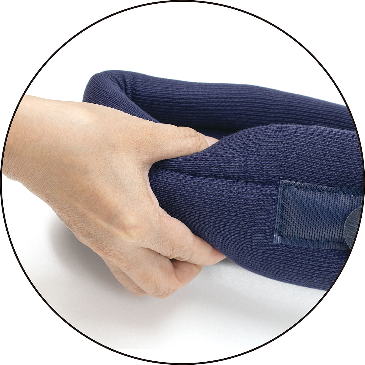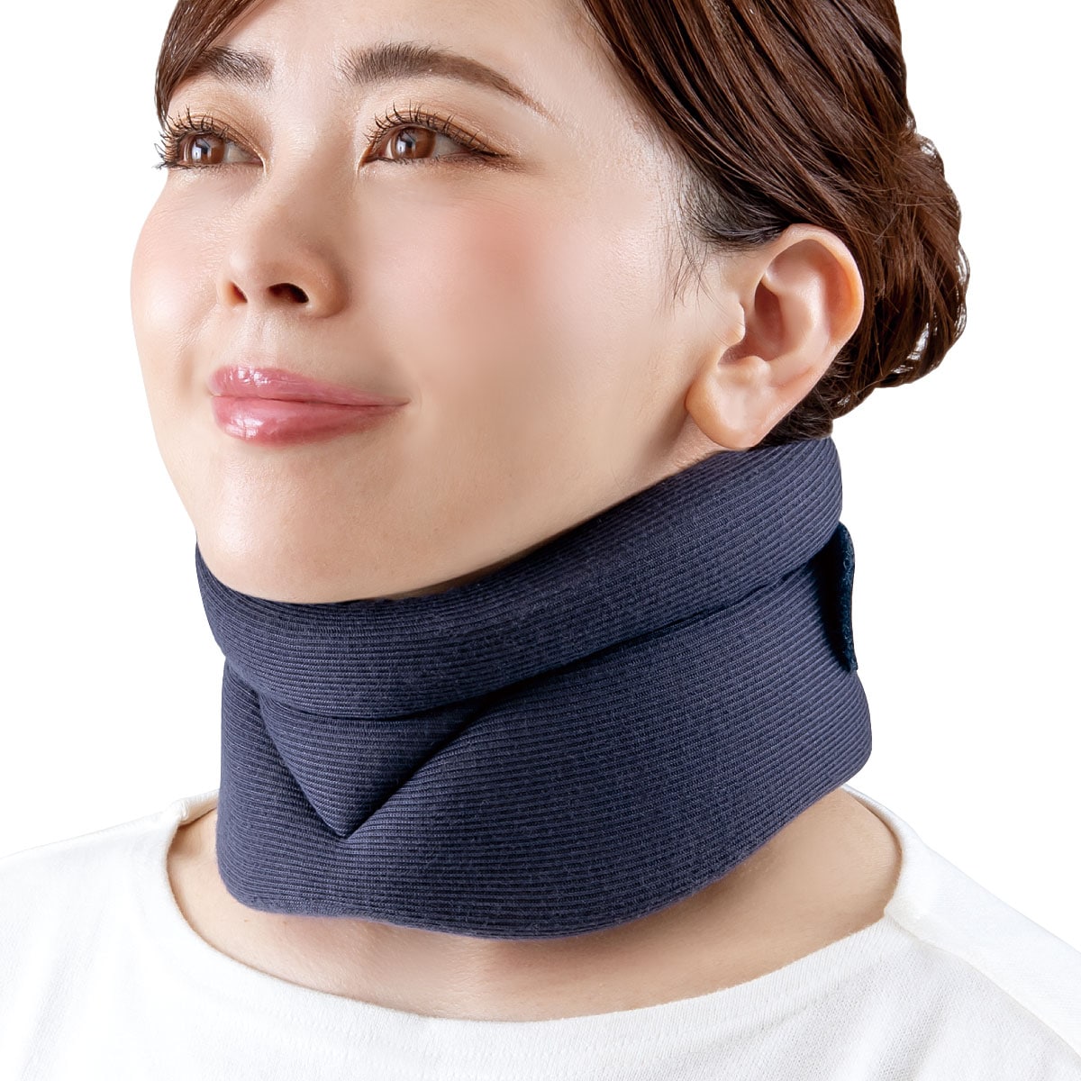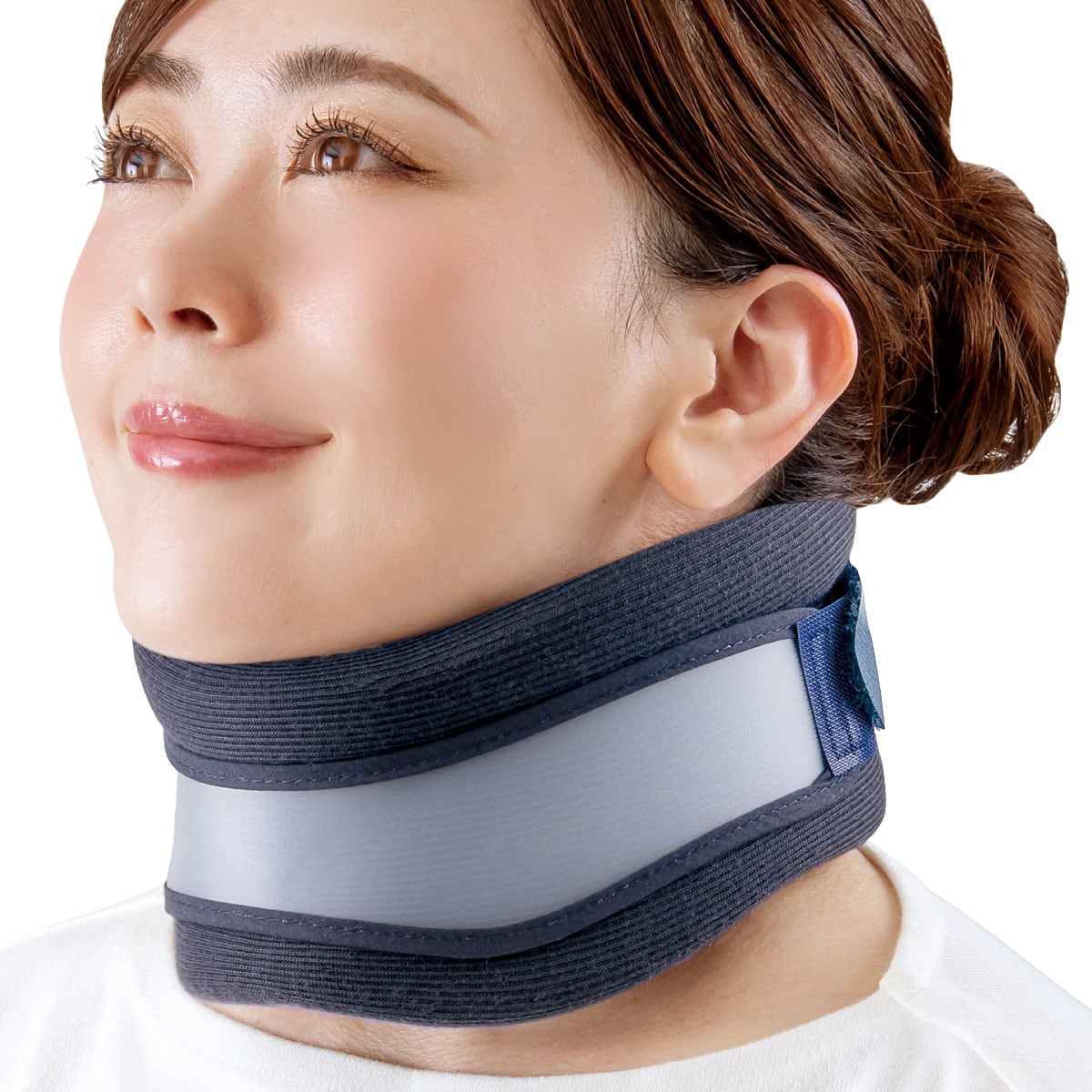 下向きがくせになってしまっている方に!首周りを支えると姿勢が整い楽になります。お好みに合わせて使い分けられる2通りの使い心地で、プレートをつければしっかり首を支えることができ、プレートを外せば適度な柔らかさでソフトに首を支えます。