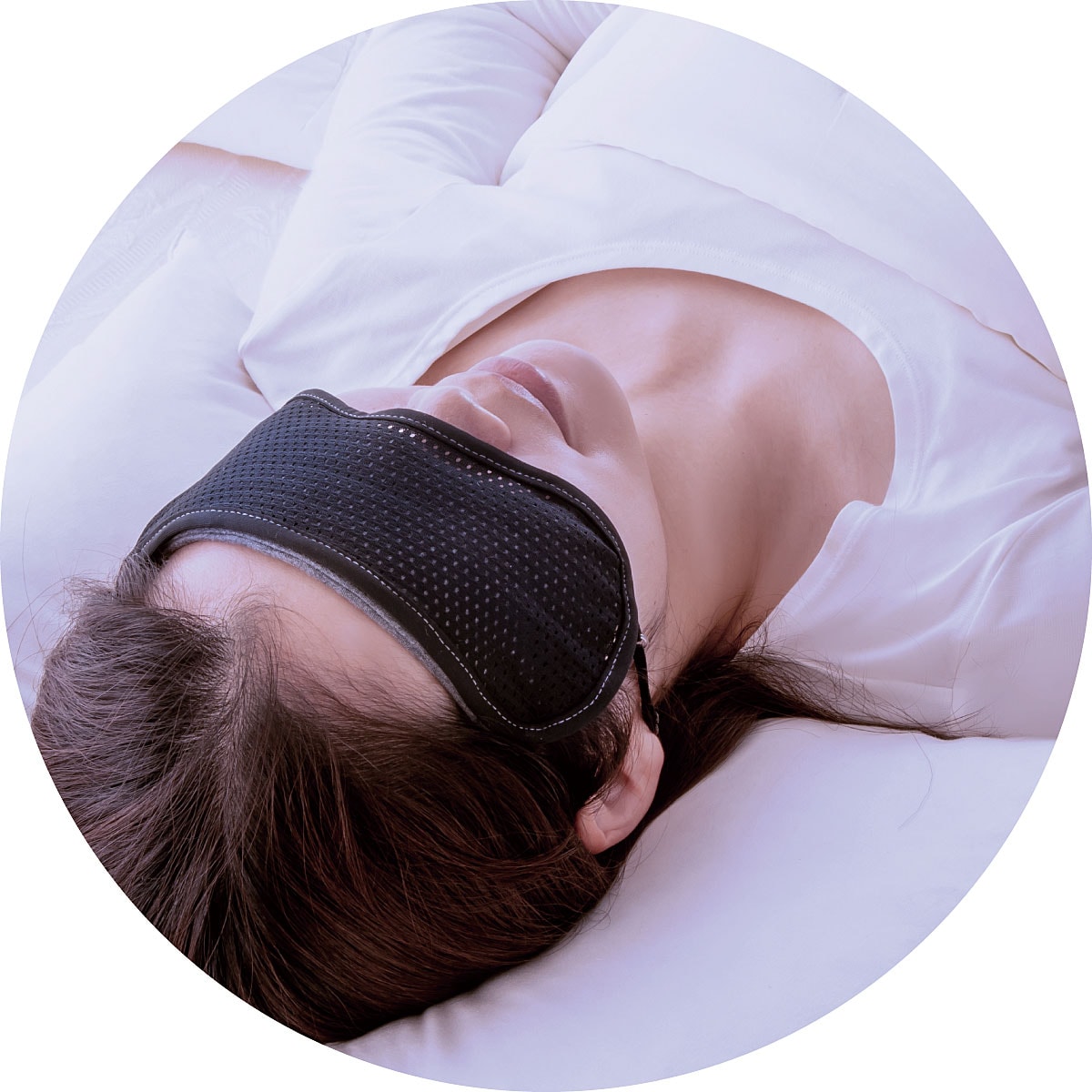 スマホやPC、小さな文字を読む時に。ピンホール効果で焦点が合い、ストレスなく読めます。軽くて視野が広いので、つけっぱなしでもストレスフリー。熱伝導性の高いグラフェンクッションを重ねてつければ目元を温めリラックス効果も。※ピンホール効果とはピンホール(穴)を通して見ることで、目に入ってくる光の範囲が制限された正視に近い位置に焦点が合うため、ハッキリ見えるようになります。ピントを調節する役割を持つ「毛様体筋」を使用しなくてもピント調節ができるため、毛様体筋を休ませることができます。