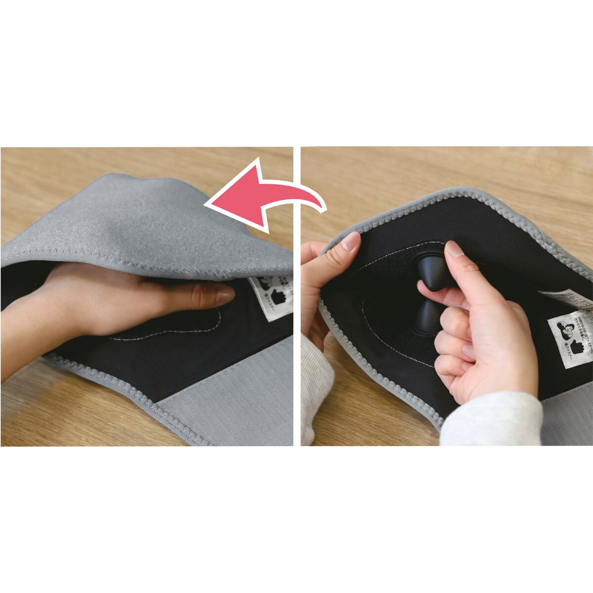 面ファスナーでお好みの場所に貼れる!