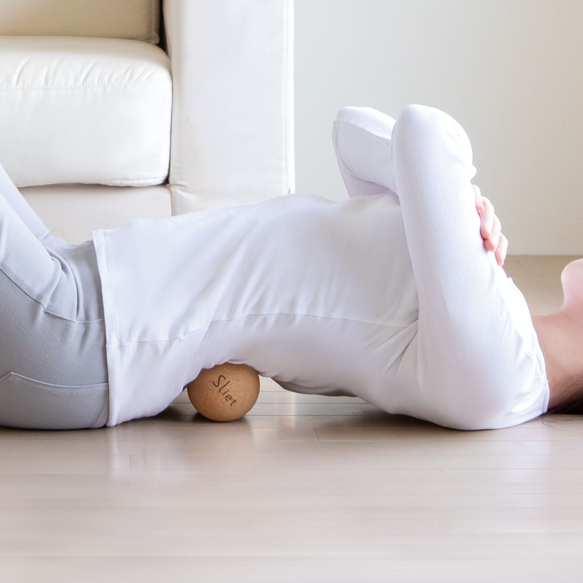 気になる部位に圧力をかけてマッサージ! ピーナッツ型なので広い範囲を効率よくほぐせます。