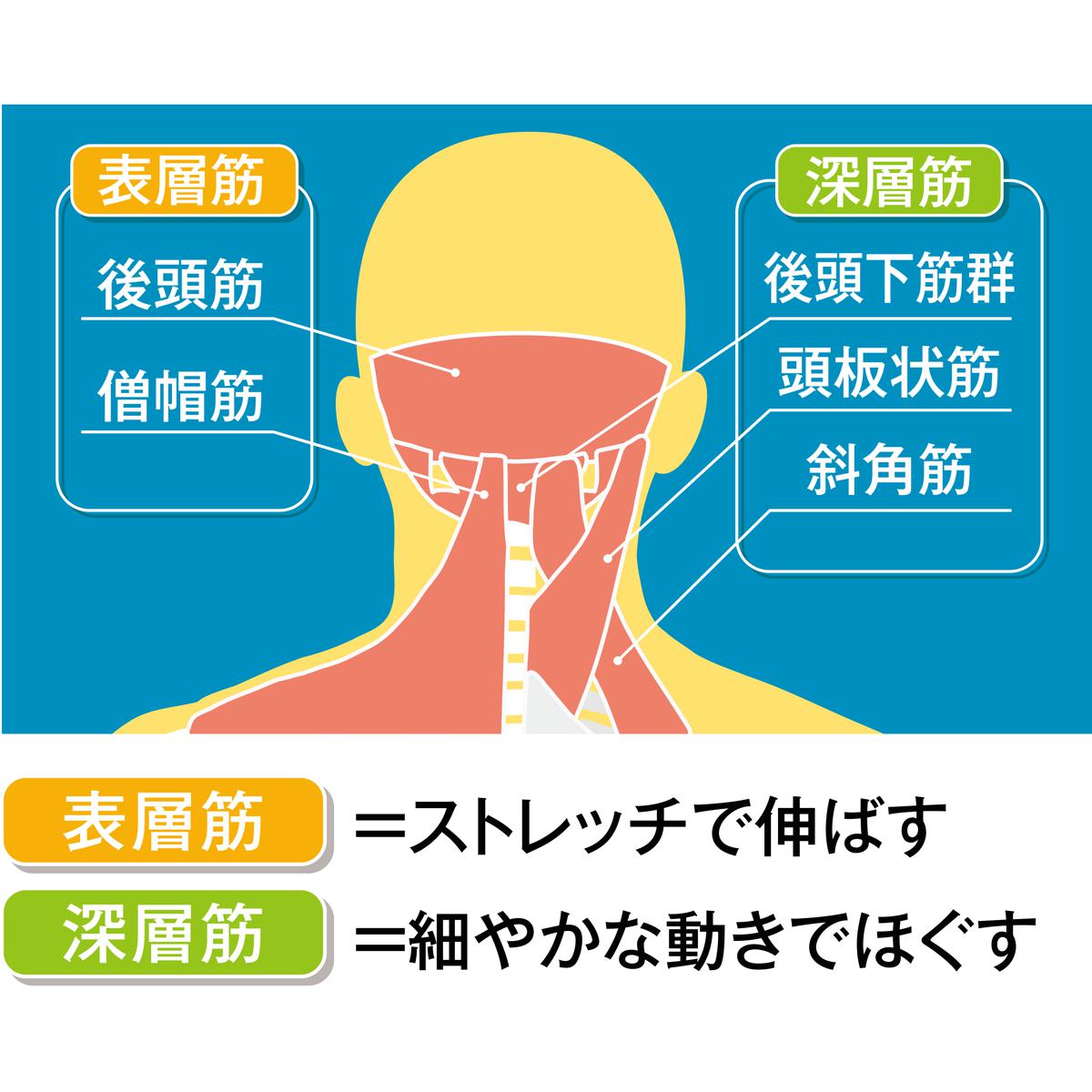 首の表面から奥深い部分の筋肉までアプローチします。