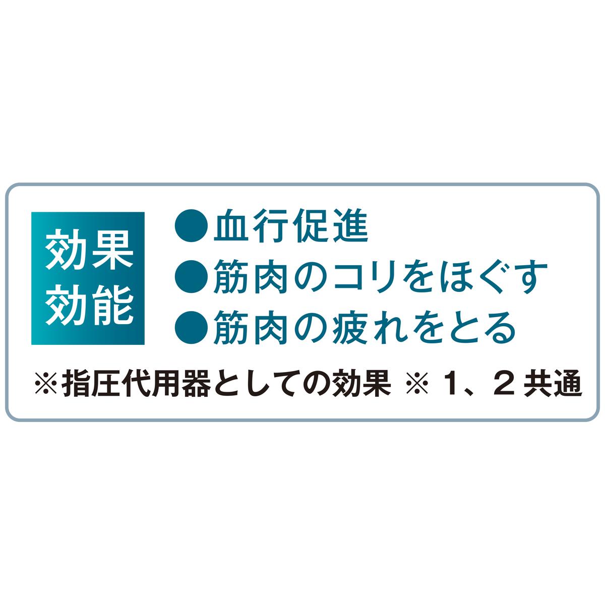 効果効能●血行促進●筋肉のコリをほぐす●筋肉の疲れをとる※指圧代用器としての効果※1、2共通