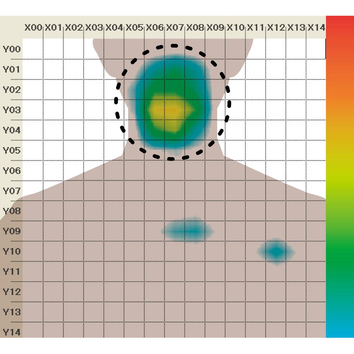 メーカー従来品 首元にスキマができ、首が曲がってしまい気道が狭くなっている状態※第三者機関にてメーカー調べ(住友理工(株)SVZB4545Lを使用)※20代男性で計測※効果には個人差があります。