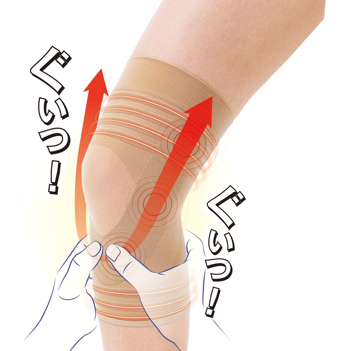前後にある整体ラインベルトがひざのお皿まわりを立体的に支え、歩行時のブレをサポート。