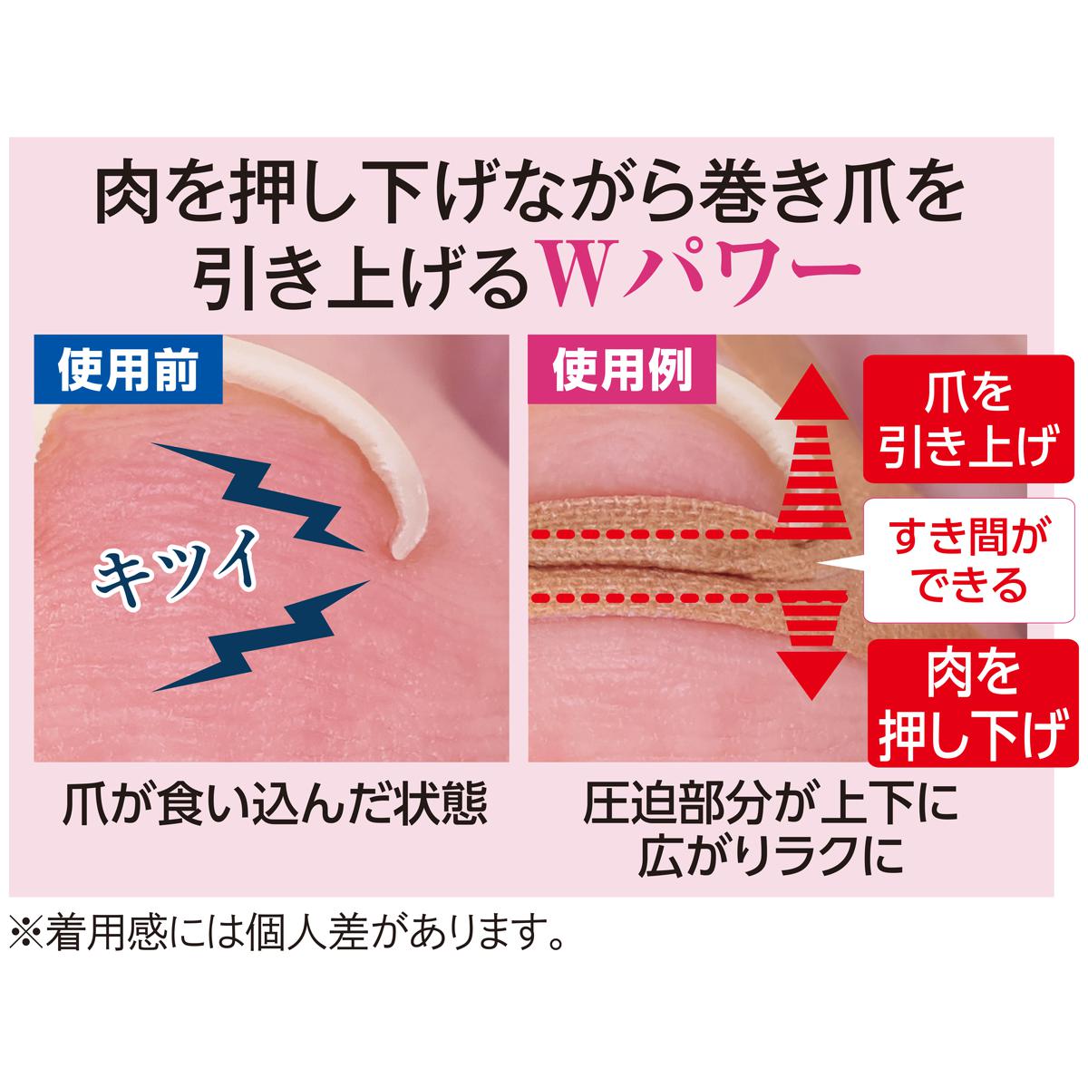 肉を押し下げるだけでなく、巻き爪を上に引き上げるダブルのパワーで巻き爪のツラさをラクに。