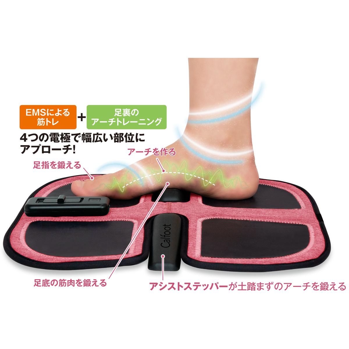 足指から太ももまで、のせるだけの簡単筋トレ! EMS運動機器 Calfoot(カルフット)アシストステップパッドです。