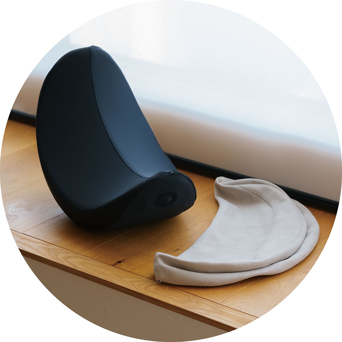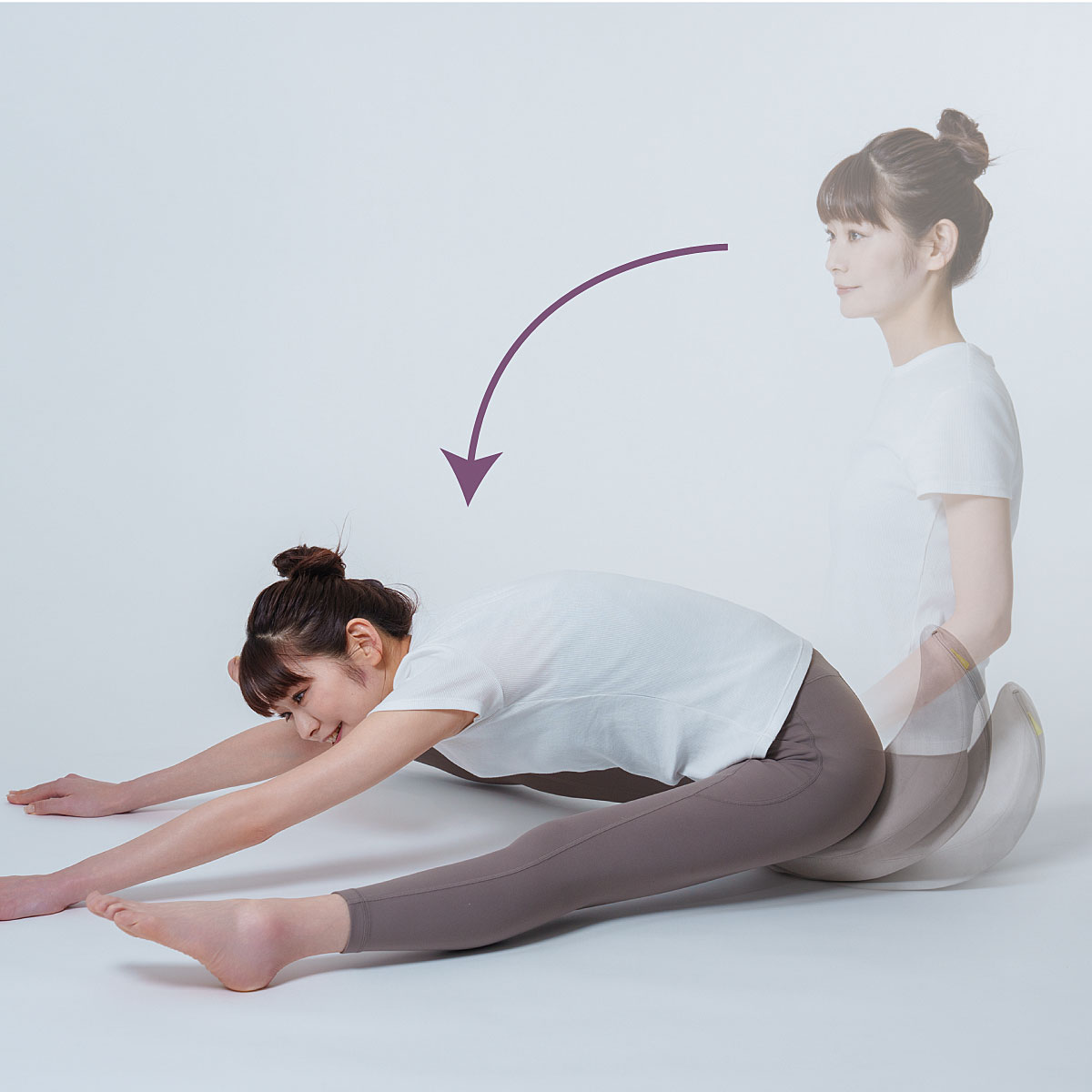本品に座ることで骨盤が起こされ、開脚運動において正しい姿勢を促します。