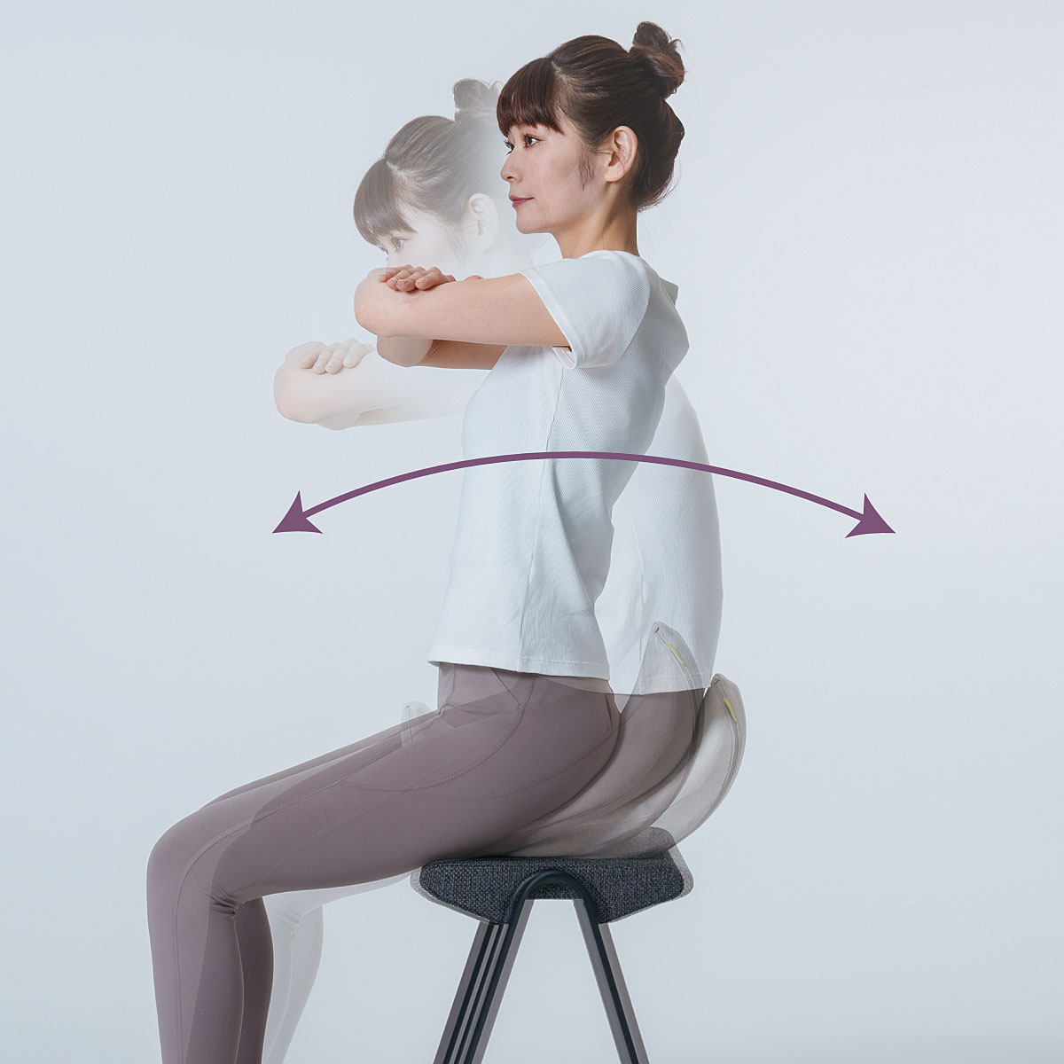 前後に揺れて姿勢を補整し、腰・骨盤周りをほぐします※イメージ