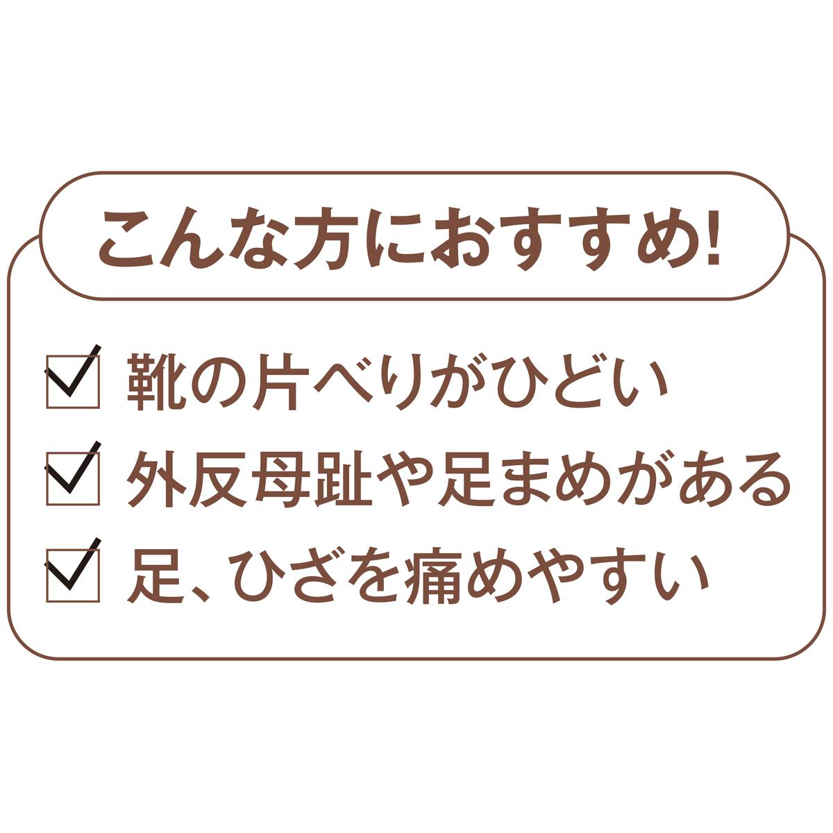 3つのアーチサポートが足指の機能を高め、足のトラブルを軽減!歩きやすく、疲れにくい、スムーズな歩行が可能に。こんな方におすすめ!□ 靴の片べりがひどい□ 外反母趾や足まめがある□ 足、ひざを痛めやすい【使い方】布地を上にして左右を確認し、靴の中に敷きます。インソールが靴より大きい場合は、先端部をハサミでカットしてください。