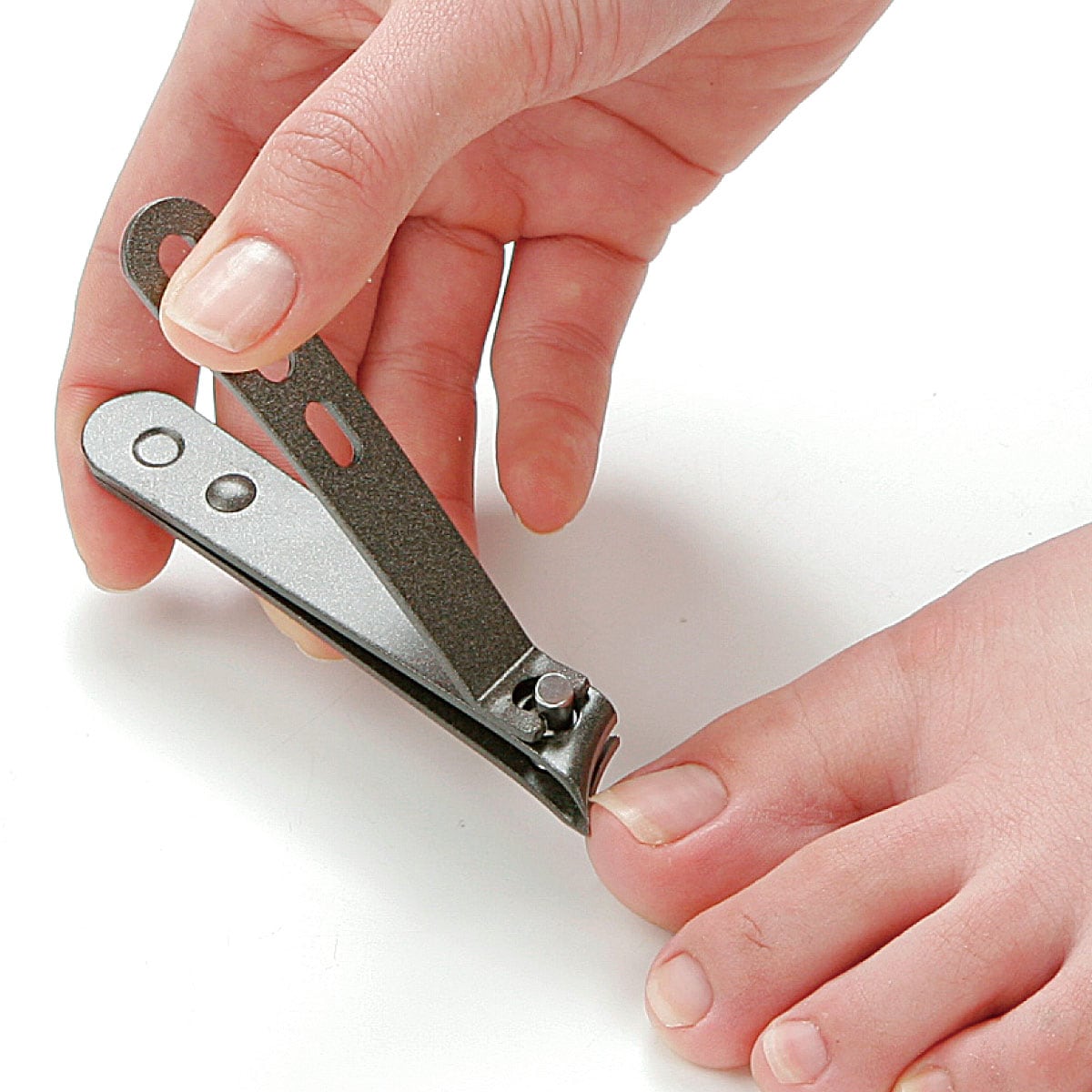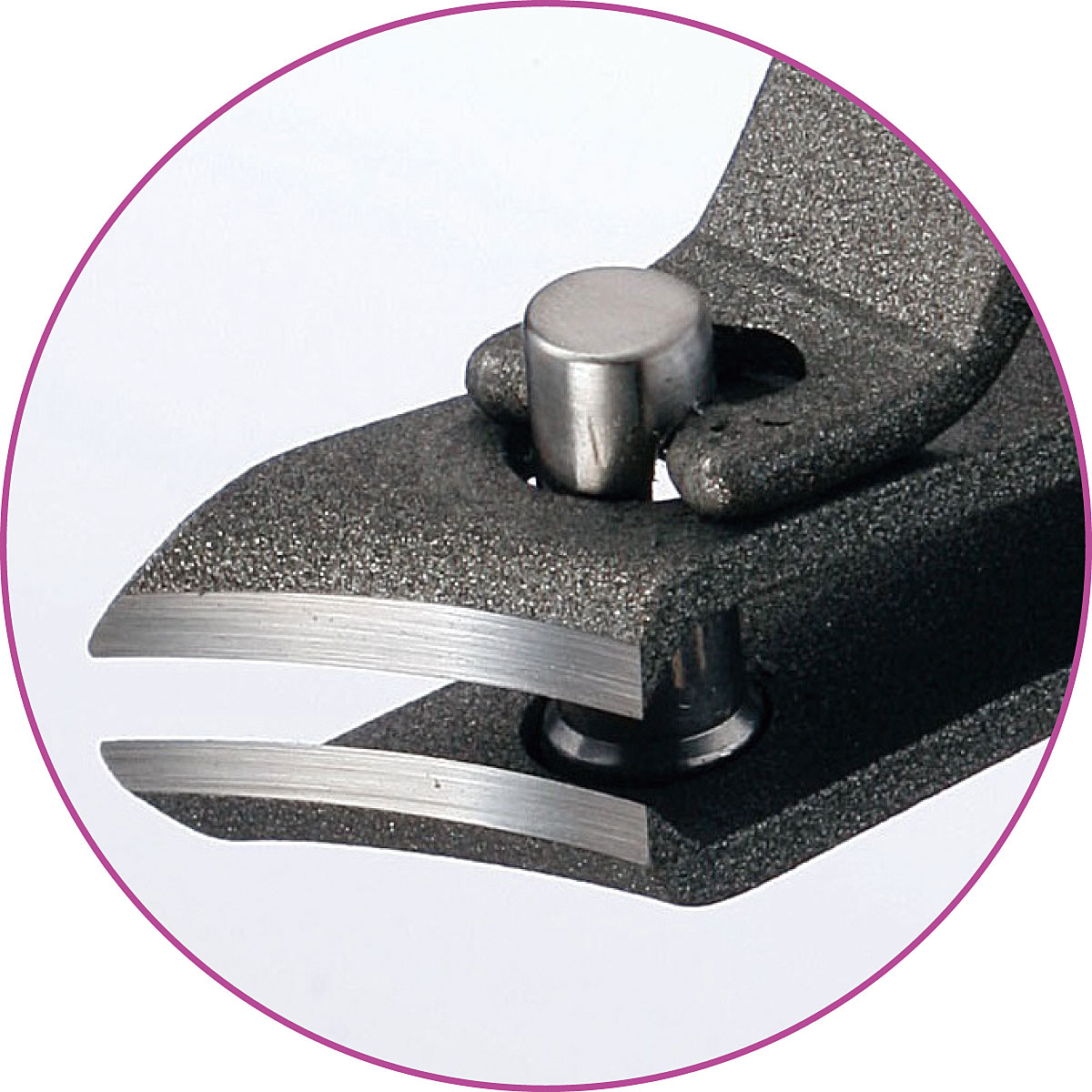 足の爪に特化したステンレス製爪切り。斜めにカープした刃と鋭利な先端で爪の隙間に入りやすくラクに切れます。