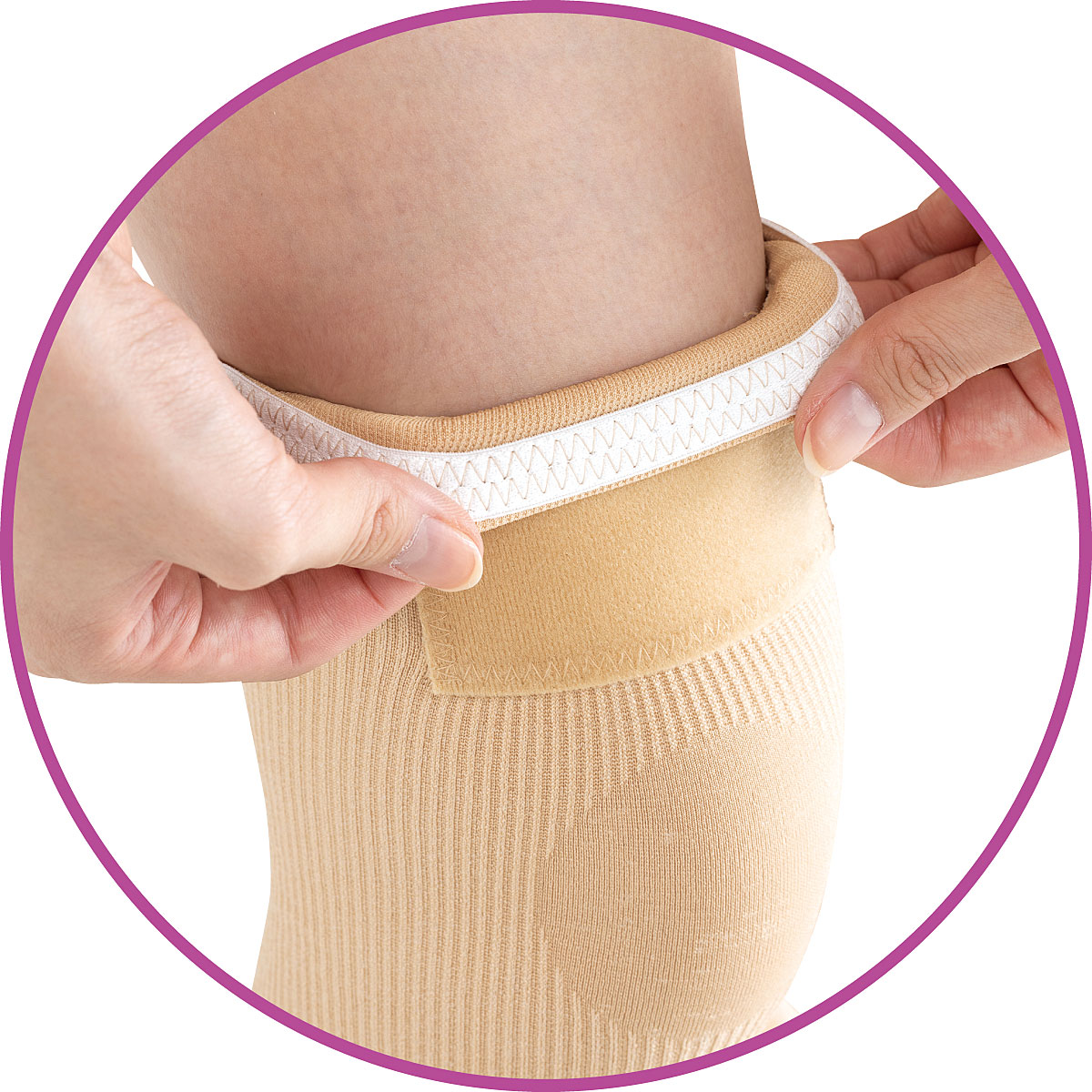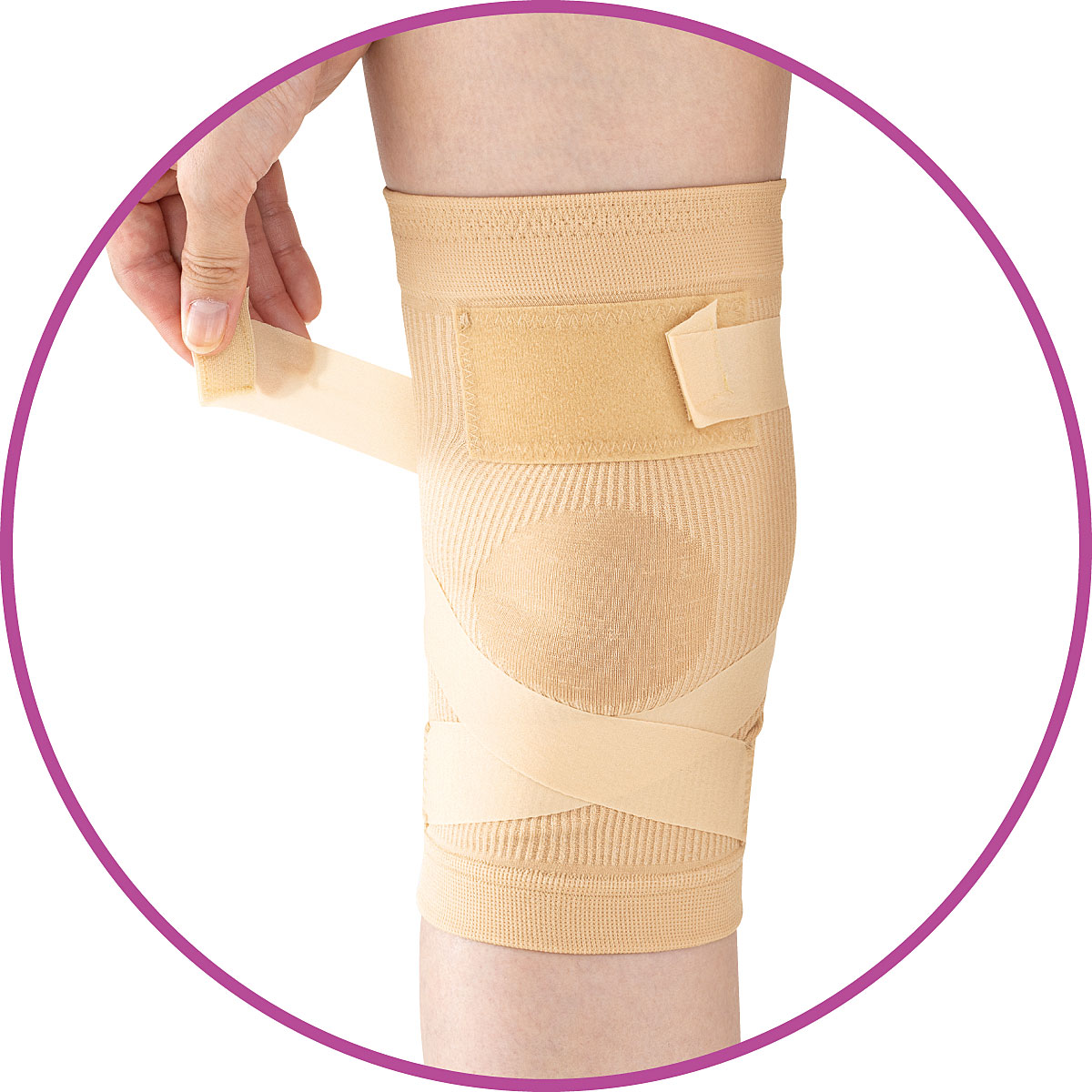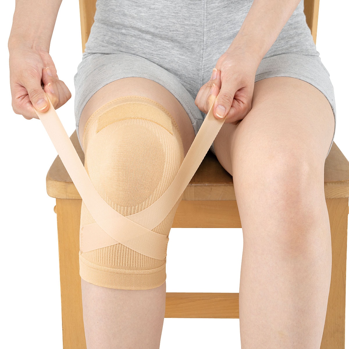 支えながら伸縮する筋肉みたいなバンドで膝の曲げ伸ばしをラクに!自分好みに調節できるのできつすぎたり緩すぎたりしにくいです。