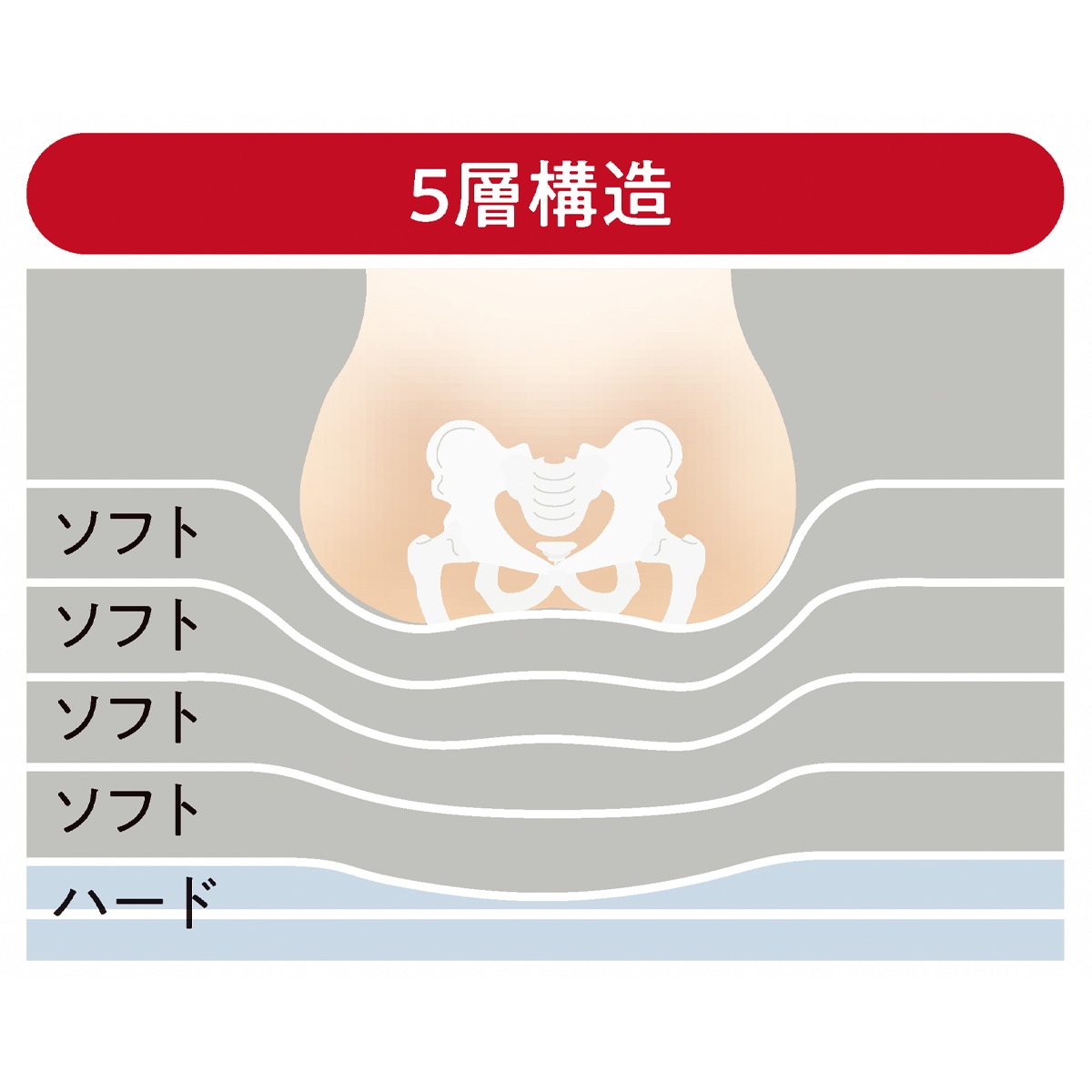 座り心地の良い縦糸5層構造!! 一番下の層を硬めにすることでお尻の底つき感がなく、宙に浮いたような座り心地を実現。