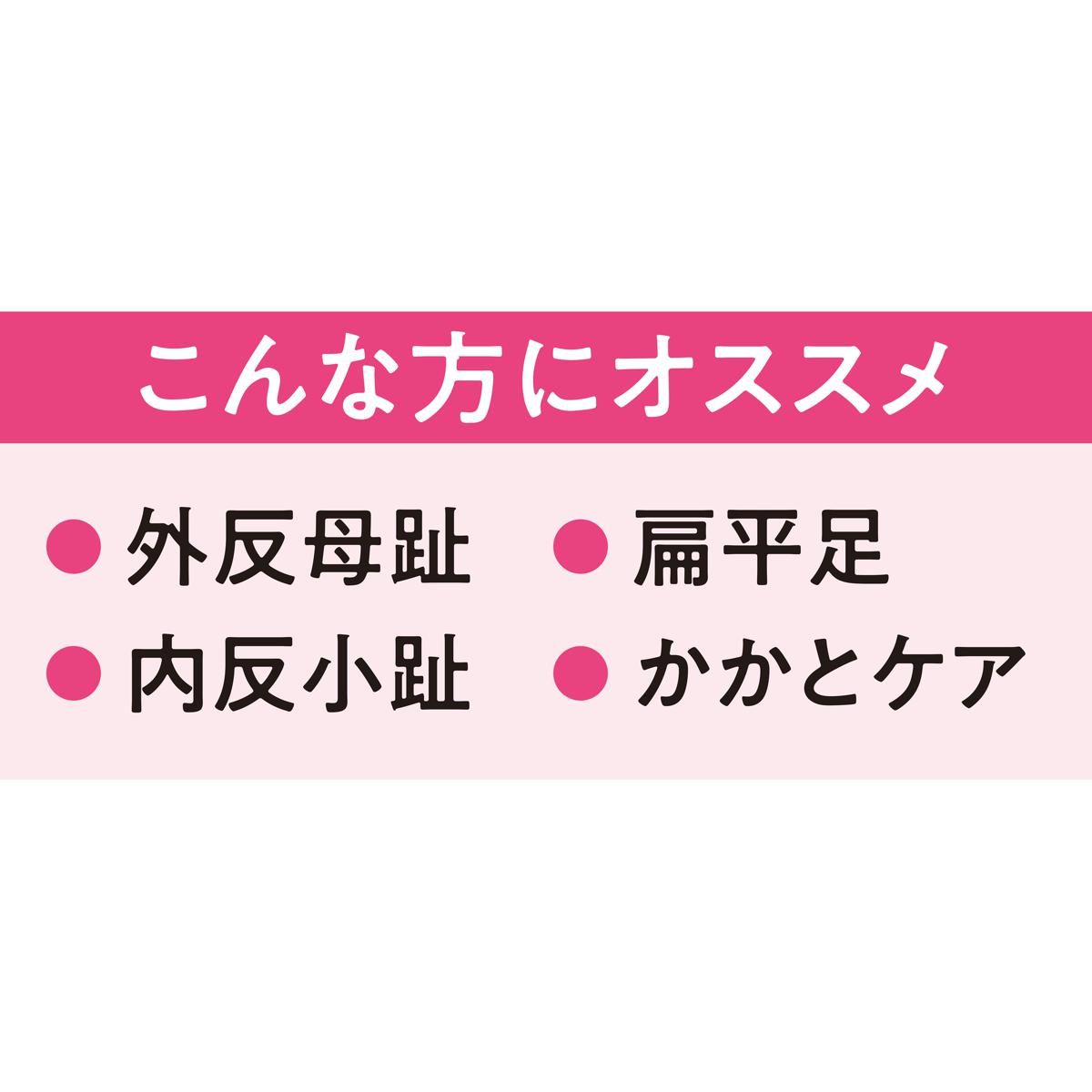 中足関節を引き締め、足指を開き補整。かかと部分にはアロエ繊維モイストを使用。親指を直接外側に開くので外反母趾対策にお勧めです。体重のかからない就寝時に履いて足指を開いて足をラクに!