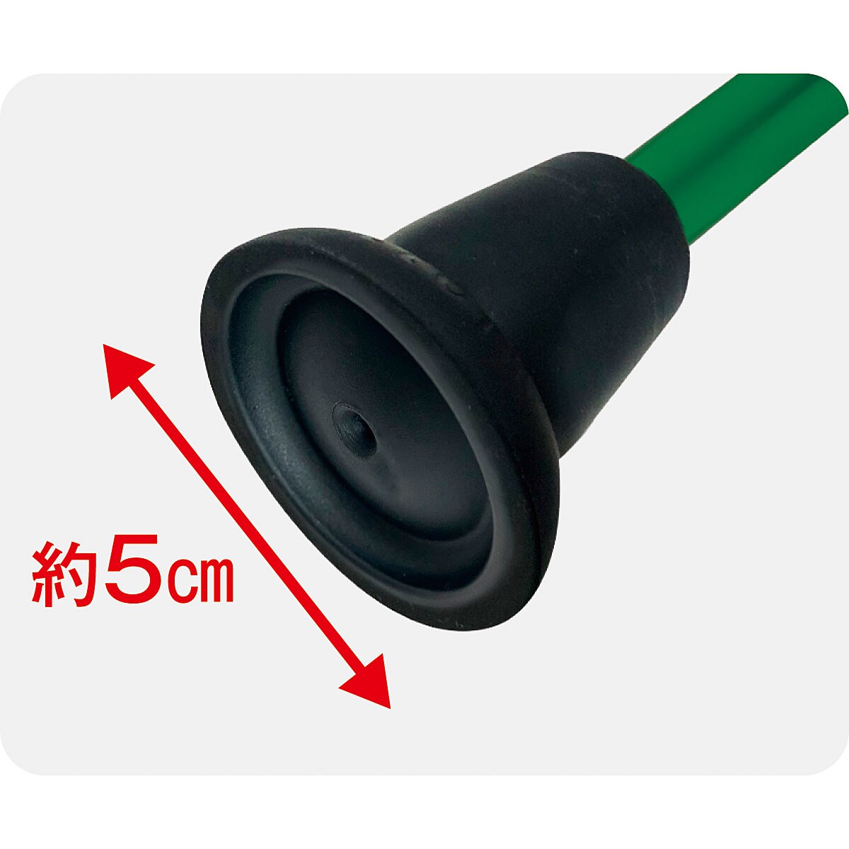 杖先ゴムは地面をしっかりとらえる幅広の底面で、安定感があります。