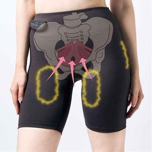 気になるお腹や姿勢に! 履くだけ簡単トレーニング!お尻と内ももに配置したEMSパッドで骨盤底筋にアプローチ!緩んだ骨盤底筋をサポートし、美しいシルエット作りやヒヤッと対策に。※EMS=電流で筋肉を刺激する運動