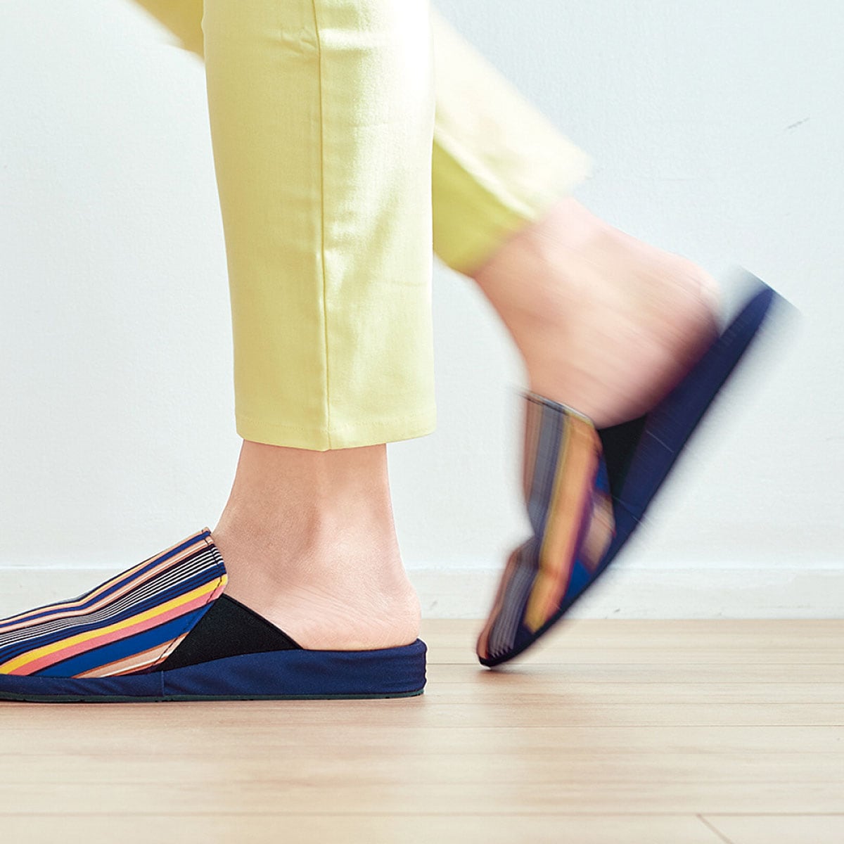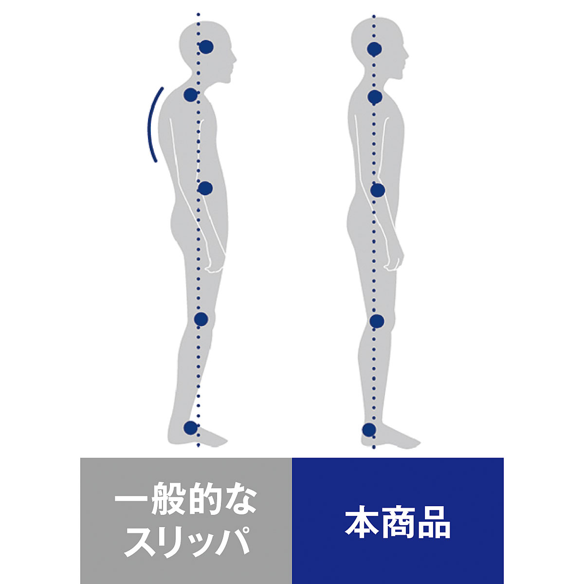 歩行をサポートし、裸足より歩きやすい機能性スリッパ。履くことで重心を意識し、キレイな姿勢に導きます。従来の「歩く」を変えるスリッパです。